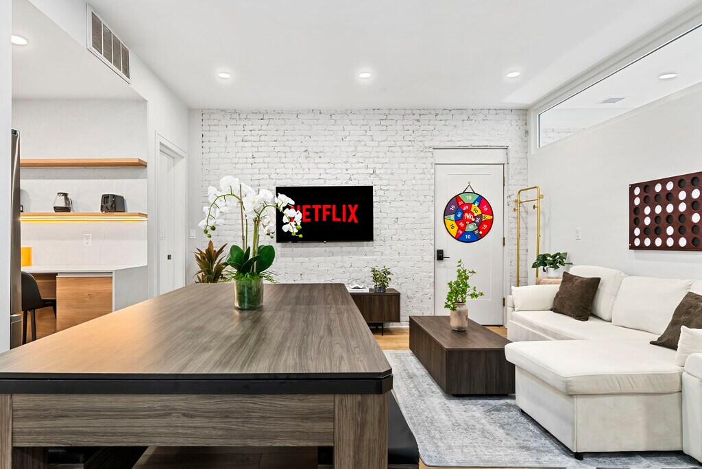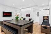 Minutes from T & Fenway Park, close to BU, Boston College, Simmons, Emmanuel. Enjoy private deck, rooftop w Marathon views, central heat/air, in-unit laundry, and game room. Stay connected with fast WiFi and a dedicated desk. Families will love amenities. Perfect for stay, work, play! **Dates go quickly! Message us today about special rates. If this home isn’t available, we manage other places in town and would be happy to find the perfect fit for your stay (***) We provide our guests with contactless self check in. You will have access to the entire rental unit for your trip. Please notice that the actual address of the listing will be provided 48 hours before check-in. We always want you to be safe at all times. The address automatically populated on the listing is less than a block away from the house. All location distances in the descriptions are in regards to the actual address. HOME FEATURE 4 Bedrooms - Smart Lock - Full length mirror - Closet with hangers - Hair Dryer - Nightstand - Desk & Chair - A/C & Heater - Pack ‘n Play Bedroom 1 with 1 Full Bed + 1 Single Bed Bedroom 2 with 1 Full Bed + 1 Single Bed Bedroom 3 with Queen Bed Bedroom 4 with Queen Bed Sofa bed Twin Air Mattress (3x) 3 Full Bathrooms - Bathrooms stocked with shampoo, conditioner, body wash, hand soap - Towels (bath towel, hand & hair towel, bath mat) are provided - Newborn/Infant/Toddler/Baby Bathtub Kitchen - Fully equipped kitchen with pots/pans, toaster, microwave, oven, coffee machine, coffee, kitchen knives, bakeware, dinnerware, coffee mugs, wine glasses, cooking utensils, kettle, tea, basic condiments, and more! - Toddler Dining and Utensil Set (BPA free, Dishwasher Safe) - Dishwasher - 2 in 1 Dining & Board Game Table - High Chair Living area - 55” Smart TV with Netflix - Shoe Cabinet & Indoor Slippers - Sofa bed - Reading Lamp Laundry - Washer and Dryer (in-unit & free) with laundry pods and dryer sheets - Iron & Ironing board - Steamer - Cleaning tools Game & Entertainment Multi-use Game Table: Hockey, billiards, football & ping pong Arcade Classics: Pacman & NBA Jams machines Family Favorites: Uno, Jenga, Yahtzee, Dominoes, Codenames, Connect 4, Bingo, Tic Tac Toe, Sudoku Party Games: Ring Swing, Shut The Box, Magnetic Dart, Ring Hook Tossing Step Pad Games: Dance & Rhythm Games, Mini Arcade Games (Whack-a-Mole, Pattern Memory), Fitness (Yoga, Cardio Workouts) Fun’ Zone: Electric Fishing, Connect 4, Shut The Box, Sticky Ball Dartboard, Ring Toss Water Handheld, 8-in-1 Board Game (Chess, Dinosaur Race, Beast Fighting Chess, Aeroplane Chess, Snake Chess, Adventure Chess, Bowling Game Sets) PARKING 1x designated spot behind the building **Kindly follow the detailed instructions provided to ensure you park in the correct area** DRIVING DISTANCE TO POPULAR LOCATIONS 3 mins to Whole Food 5 mins to BU, BC, Simmons 8 mins to Fenway Park 8 mins to Boston University 10 mins to Harvard/MIT 12 mins to Central Square 16 mins toTD Garden 16 mins to Porter Square 16 mins to Downtown Boston 16 mins to Boston Logan Airport 20 mins to Assembly Row 14 mins to Boston Convention & Exhibition Center HOUSE MAINTENANCE Trash pick up (Friday) PROPERTY DISCLOSURE We employ security and safety measures for our guests and neighbors. Thus, the following devices are installed: - 1 doorbell camera and 1 active camera located on the exterior of the property and in no way/shape/form point inside the house to protect your privacy. Devices are on 24/7. - Smart home device that detects noise decibel levels inside the home. This device also has the capability of detecting smoke from cigarettes, marijuana, and vape pens. The device does not record video or audio. Your experience is the most important thing! Please don't hesitate to reach out if you have any questions or concerns during your stay. We are always available to respond.