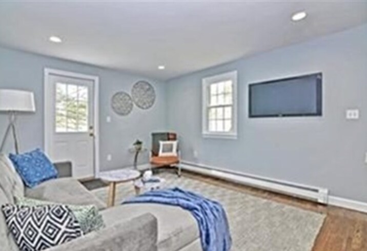 Sparkling and tastefully renovated single-family home in a lovely Wayland neighborhood. The open first floor features a formal living room with access to a large deck overlooking nature, and a dining room with a stunning fireplace. The beautifully redone eat-in kitchen with high-end stainless-steel appliances opens to a second deck, perfect for summer barbecues. A convenient first-floor bedroom sits next to an updated full bath. The modern primary suite, two additional bedrooms, and a renovated full bath complete the second floor. The finished walkout lower level offers high ceilings, a family room, playroom, office, cedar closet, and laundry/utility room. Additional highlights include hardwood floors throughout, 200-amp service, newer heating system, recessed lighting, new driveway and additional 3 cars parking lot. Located in desirable South Wayland near the town beach, Natick Collection, Shoppers World, Mass Pike, Logan Express, and top-rated Wayland school