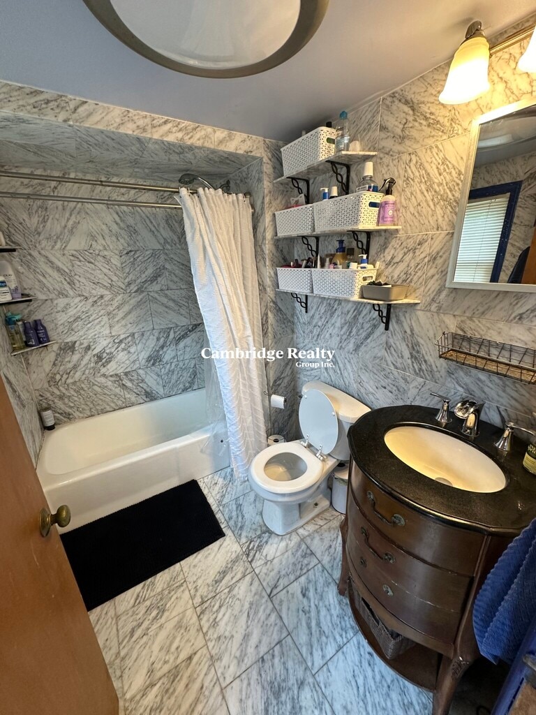 Located on a tree-lined street less than half a mile from the Central Square Red Line and countless restaurants, bars, grocery stores, and more, this two-bedroom, one bath apartment spans two floors of living space and comes with one off-street parking space. Renovated kitchen with modern cabinets, butcher-block countertops, stainless steel appliances, and a unique wooden ceiling that you have to see to appreciate. Renovated bathroom with marble tiles and in-unit washer/dryer combo. Large living room with plenty of windows allowing ample natural light. At the top of the stairs, a skylight that keeps the space bright. Two bedrooms, both a great size and able to fit a queen-sized bed, nightstand, dresser, and desk. Large portion of a shared deck overlooking large shared yard-space. One off-street parking space in two-car tandem driveway included in the rent. Incoming tenant pays for cooking gas, gas heat and hot water, and electricity. First, last, security deposit, and broker fee due at lease signing. Sorry, (non-negotiable) no pets and no smoking on the property.