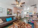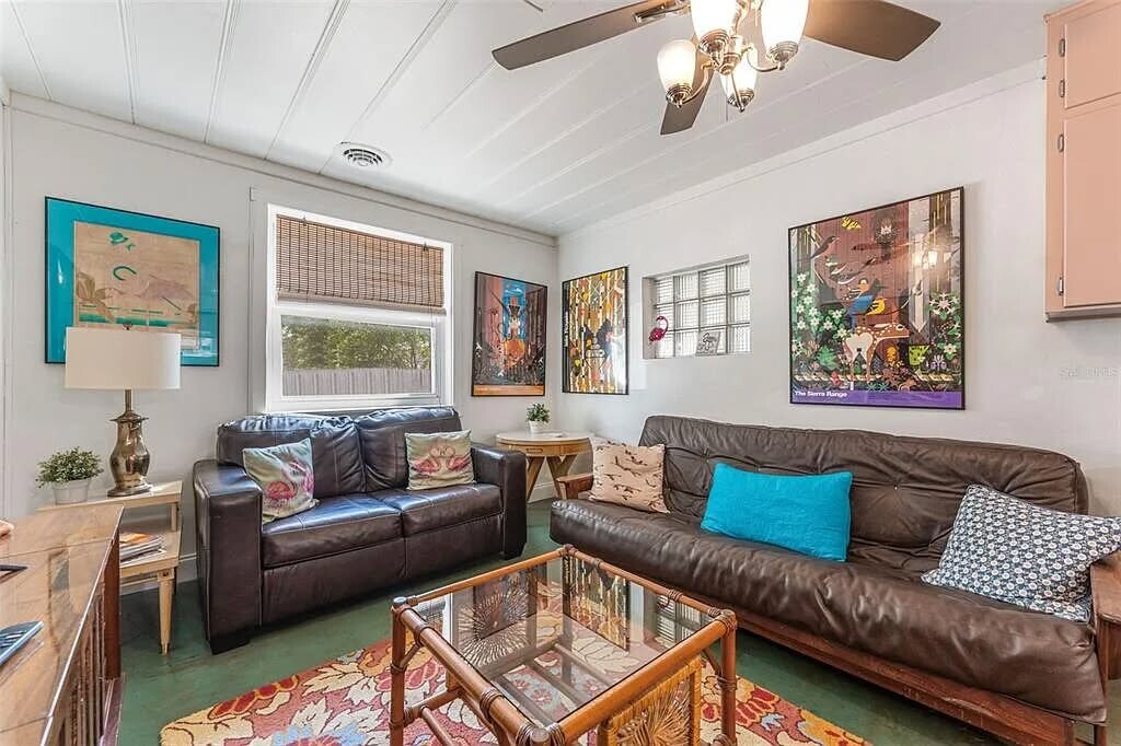 Welcome to your fully furnished Gulfport home: a vibrant mid-century 2-bed/1-bath duplex unit full of personality, comfort, and artistic spirit. Located just minutes from the Waterfront Arts District, famous Gulf beaches, and downtown St. Petersburg, this thoughtfully designed space is ideal for anyone seeking a charming, move-in-ready rental in one of Pinellas County's most beloved neighborhoods. The home includes two furnished bedrooms (one queen and one twin), one full bath, stained concrete floors, a bright living area, central HVAC, a fenced yard, laundry on-site, WiFi included, and off-street parking. Furniture can be removed if desired. Pet friendly.