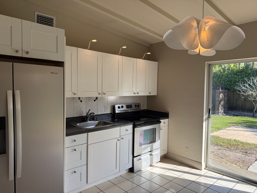 This cozy & nostalgic house is located in Fort Lauderdale's Shady Banks neighborhood. It boasts a retro bathroom with tub, two bedrooms, a nicely appointed Kitchen/Dining room, and large living room. The home has a backyard shed holding its washer and dryer. It has a huge backyard with a privacy fence. The perfect location for everything you would want in FT LAUDERDALE. It's close to beaches, parks, I-95, the Bright Line and tri-Rail stations, and minutes away from the bustling downtown Fort Lauderdale area. The house has central air-conditioning, and ceiling fans in the living room and front porch. The cement front porch is perfect for a relaxing moment at the end of a long day. Shady Banks is a secluded, friendly, walkable neighborhood in the middle of everything. It has wonderful parks and fantastic neighbors.