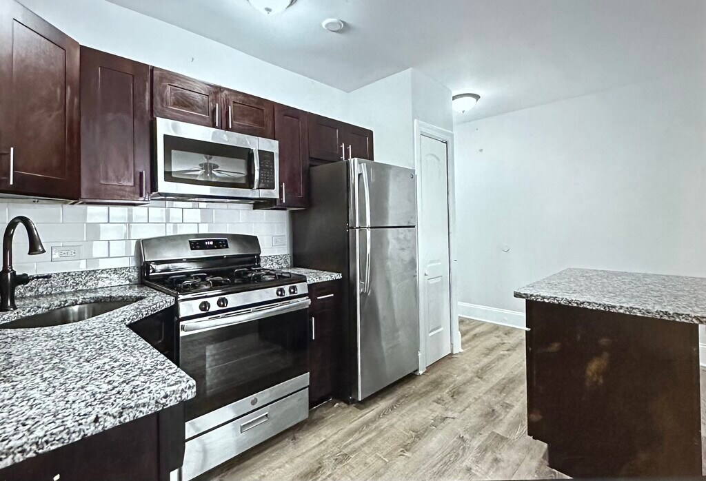Live Gorgeously in the 2 Bed + Den with Dishwasher & Heat Included! Apartment Features: —Espresso Kitchen Cabinets —Granite Countertops with Deep Undermount Sink —Stainless Steel Appliances includes Dishwasher —Eat In Kitchen Island —Convenient Den/Office Area —Designer Plank Flooring —Renovated Bathroom —Two Entrances with Foyer & Flex Space —Ceiling Fans with LED Lighting —Heat/Water Included —Pets Welcome (No Pet Rent)