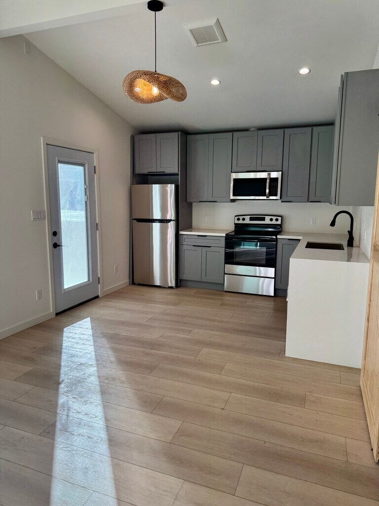 Brand new 1-bedroom, 1-bath ADU with its own private entrance and private patio. Fully equipped with new appliances and an in-unit washer and dryer. Utilities are included in price. Enjoy dedicated outdoor space with a private patio. Plenty of street parking avallable. Clean, modern, and efficiently designed. A Ideal for someone seeking a brand-new, private living space with outdoor access and included utilities. Tenant pays for trash service.
