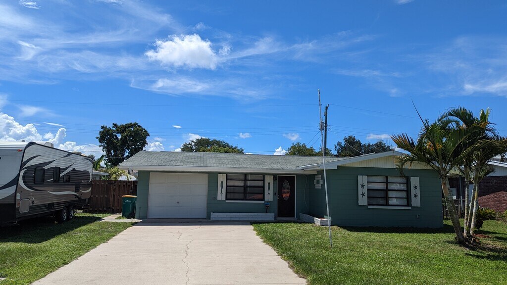En alquiler: Una acogedora casa de 3 dormitorios y 2 baños con un garaje para un automóvil y una amplia entrada. El hotel cuenta con un gran patio trasero con una piscina, a solo 5 minutos en coche de la playa. Está ubicado en un vecindario tranquilo y cordial, y está convenientemente cerca de tiendas y restaurantes. Se incluyen lavadora y secadora. Se aceptan mascotas.