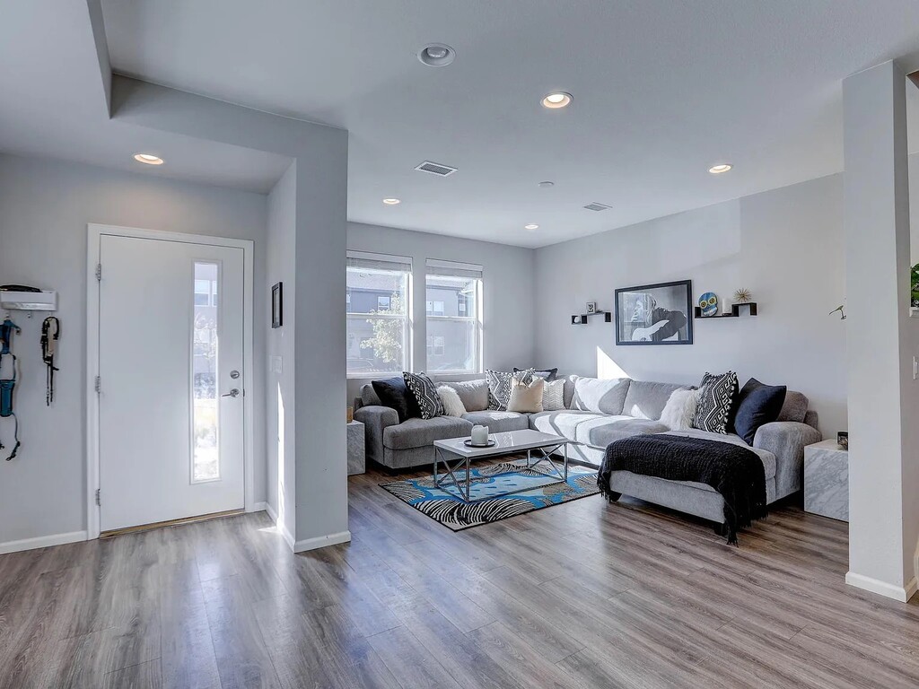 Section 8 friendly! Welcome to this nearly-new 3 bedroom, 2.5 bath William Lyons townhome with attached 2-car garage in Avion at Denver Connection. Enter into the large open floor plan that this beautifully kept townhome boasts. The main floor has laminate flooring throughout. The light and bright living room flows into the kitchen with 42in white cabinets, granite slab counters, gas stove, and a large island. Towards the back there is a pantry, half bathroom, and entry to your attached garage. Upstairs provides a large master bedroom with a massive walk-in closet and an en-suite bathroom with oversized shower and dual vanity. Down the hall are two more spacious bedrooms, a full bathroom, and laundry room. The Community HUB features a clubhouse, pool, business center, parks, and a dog/pet wash! This home has an amazing location less than 20 minutes from Downtown Denver, the Tech Center, and DIA, is minutes from the Transit Station, and has easy freeway access. Denver Connection boasts 40 acres of parks, planned 10-acre city park, dog park, and the upcoming town center project! Perfect location to fully enjoy the walkability to the upcoming community town center project "The Flyway." At the heart of The Flyway will be a public plaza with outdoor seating, high quality hardscape, public art, and sidewalk connections to stores and services.