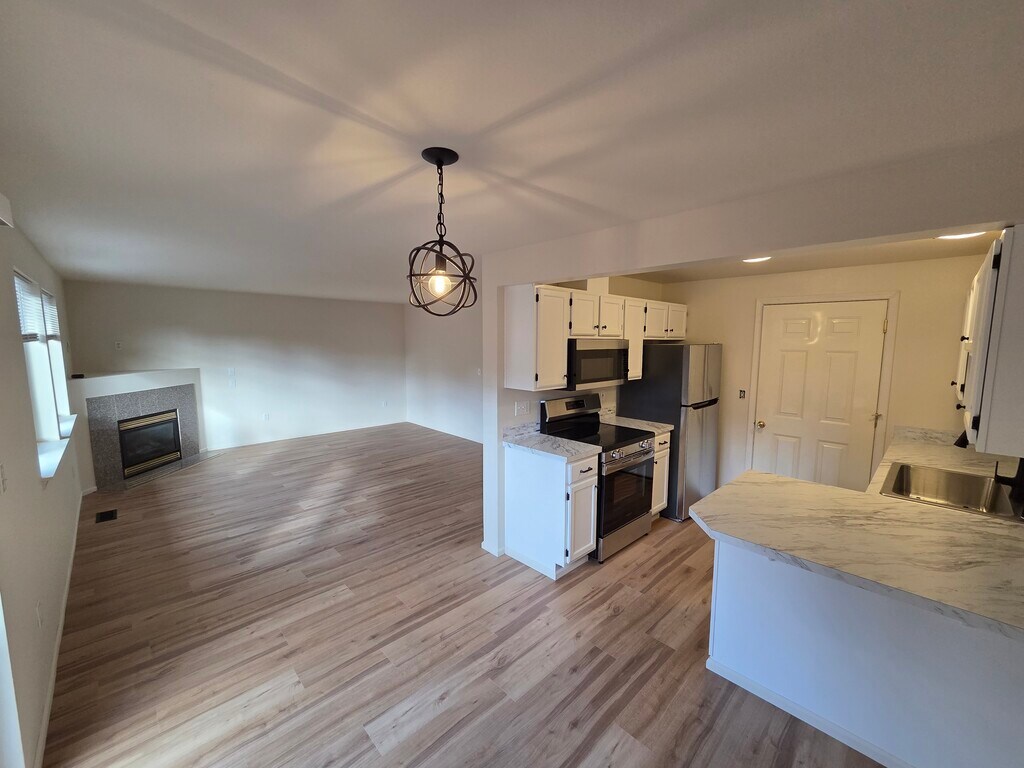 garage Freshly remodeled, like new condition, 3 bedroom 2-1/2 bath Duplex located in a nice quiet cul-de-sac on the South Hill of Puyallup between Meridian & Canyon. This beautiful home features a gas fireplace, stainless steel appliances including a built-in microwave, washer & dryer hook-ups, a nice private back deck and a 2 car garage with opener. Brand new carpet & hardwoods throughout. It's heated by an efficient natural gas furnace and also a gas hot water heater to save on utility bills. Move in costs are first, last & $2500 deposit.