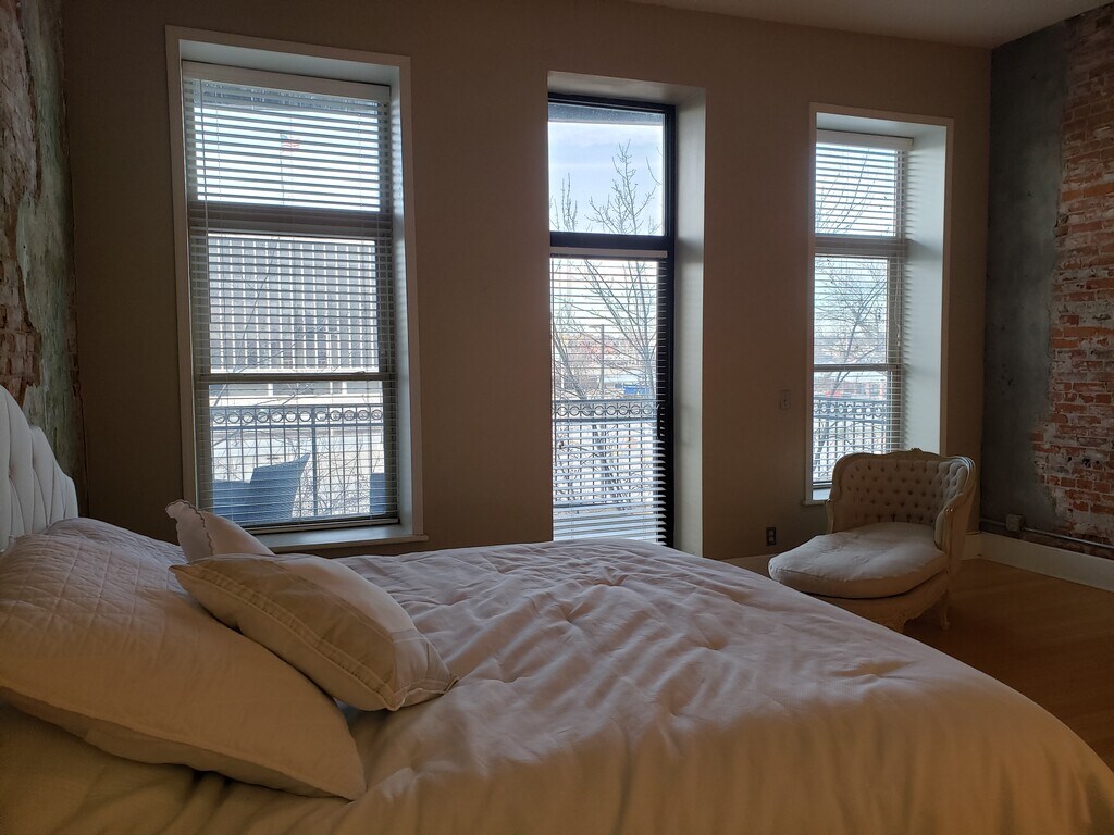 Increíbles condominio de 1 habitación cuenta con paredes de ladrillo a la vista, pisos de madera noble, techos altos con una claraboya, un amplio e impresionante suite principal con una chimenea y balcón con vista al río y de Davenport, IA! Una moderna cocina abierta en la sala de estar con electrodomésticos de acero inoxidable, 2 bathrooms,and lavadora y secadora en el apartamento. Hay un garaje compartido para 1 auto a parque con un lugar de estacionamiento adicional en la salida de la cancha. Negociar sobre mascotas con la aprobación del propietario y depósito adicional.