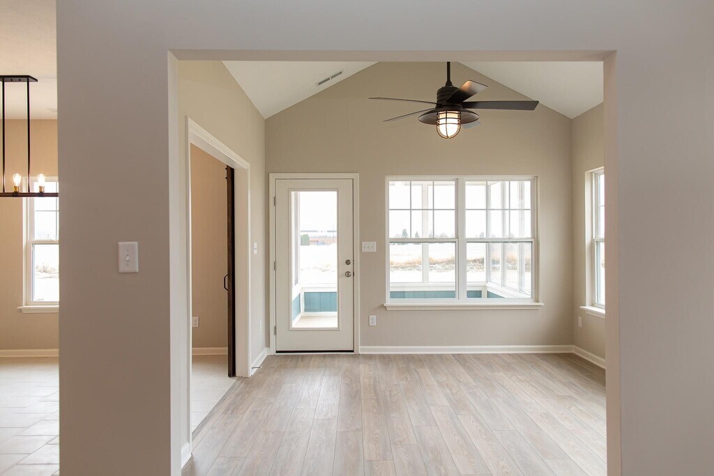 Excellent location, close to downtown amenities, & I70, State Road 9, and US 40. Set in a peaceful location, overlooking fields. Lawn care (weekly mowing and seasonal lawn care) and snow removal is included in rent! Tupelo Drive has three double bedrooms, including a spacious vaulted ceiling master suite with walk in closet, double vanity and shower room. The great room has a vaulted ceiling with light/fan and efficient wood burning stove. Plenty of storage in the ample kitchen units, together with high end appliances, quartz worktops, and a separate coffee bar. The house also offers flexibility with a dining nook and barn doors to a separate area that could be used for formal dining or a workout/relaxing space. From here there is external access to a fully screened in porch area, with access to the patio, which is wired ready for a hot tub! There is also a separate office and a boot room from the garage (for those snowy days!), plus a laundry room with washer & dryer included. The double garage has floored storage above. The bedrooms are laid to carpet, with tiled floors in the master and family bathroom, kitchen, boot room and dining area. LVP flooring in great room and office.