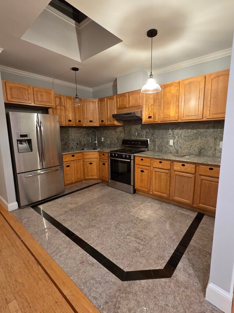 This is a luxury residence on the 3rd floor of a beautifully updated, spacious three-story home in the peaceful and residential Excelsior District. The space boasts 11 foot ceilings, a large rooftop deck with a picturesque view spanning all the way to the bay bridge. It also has hardwood floors, crown molding and massive 23x18 foot living room to sprawl out in. The living room itself is larger than most studios in this area! You will find multiple skylights throughout to let all the natural light shine through. The space has security cameras on site and boasts smart locks for convenient access. Reach out to schedule an in person tour! Preferred at least 10 mnth lease DOGS NOT ALLOWED, CATS ok $1500 pet deposit Does not include exclusive garage or yard use. Excellent Transit Access 3 min drive to access 280-N and 5 min to 280-S Less then 10 min drive to Stonestown mall, SF State, city college ocean campus and Westlake shopping center 12 minute walk to Mission St & Geneva Ave bus corridors BART Access: Balboa Park BART – 6 min drive Glen Park BART – 7 min drive Major Bus Lines: 14 / 14R Mission Rapid – straight to Downtown 49 Van Ness / Mission – connects to SFSU & City College 8 Bayshore – to Chinatown, Financial District, SoMa 43 – to SFSU, Masonic, Laurel Heights, UCSF areas