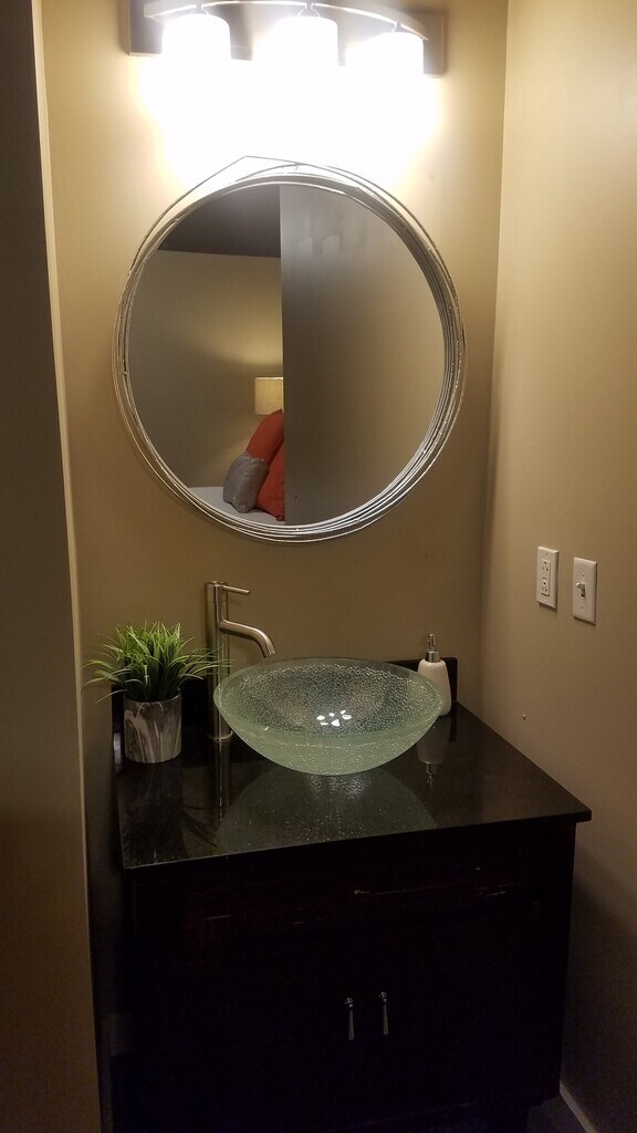 El loft del centro de la ciudad, bellamente decorado, con un dormitorio y un baño, lavadora y secadora de carga frontal, incluye un espacio de estacionamiento dentro del garaje seguro, acceso seguro al edificio con llavero para entrar y salir del edificio. El centro de la ciudad está cerca de todas las tiendas, restaurantes y tiendas de comestibles, y ofrece una ubicación conveniente con respecto a varios hospitales. El loft está repleto de todos los accesorios que necesitarás para sentirte como en casa. Ventanas de pared a pared en la sala de estar y área de juegos de diseño abierto, pisos de hormigón pulido, cocina con encimeras de granito, ventiladores de techo en la sala de estar y el dormitorio, sin ventanas en el dormitorio, lo que es ideal para dormir de día o para cualquiera que ame dormir en la oscuridad completa. ¡Le encantará hospedarse en este hotel convenientemente ubicado cerca de todas las actividades del Museo de la Ciudad, Windows at Washington, el Centro de Convenciones, el estadio Busch, la fila Restruarant y mucho más! Este lugar es ideal para profesionales médicos que viajan o para cualquier persona que viaje por trabajo. Se requiere un mínimo de 3 a 6 meses de arrendamiento. Se requiere una solicitud y una pantalla de 29,00.