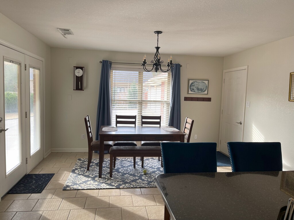 A lovely 4 bedroom, 3 baths in a 2,414 sq ft ranch house with lake and forest views. A clean, well maintained fully bricked home built in 2002 with all hardwood or ceramic tile flooring throughout. Very clean with new paint. Centrally located to amenities. Quiet and safe Caroline Acres Subdivision neighborhood with lake and forest views. Attached 2-1/2 car garage with mini-split HVAC plus a 3 car partially enclosed carport. The kitchen has an attached dining and granite countertop sitting. The master bedroom has an attached bathroom with a large jacuzzi tub. The fourth bedroom also has an attached bathroom. Large bedrooms and closets throughout! A good size laundry room with washer and dryer hookups. For interested renters, please contact the owner for my information. Will consider both short or long term leases.