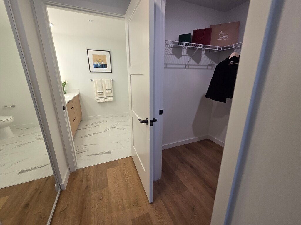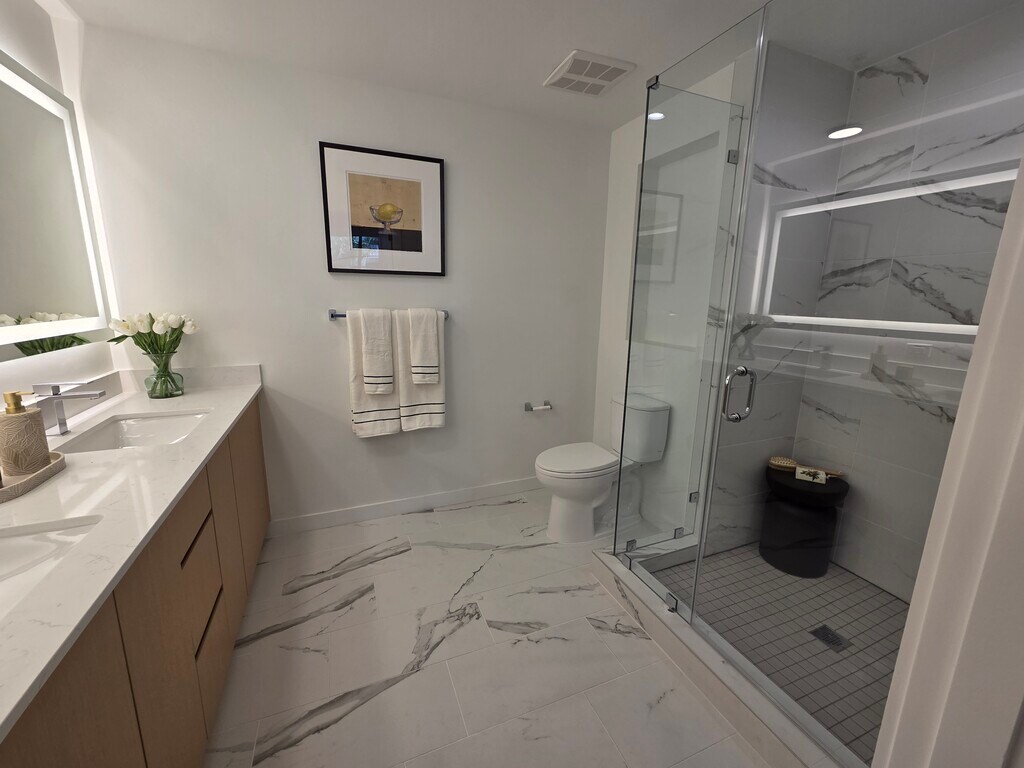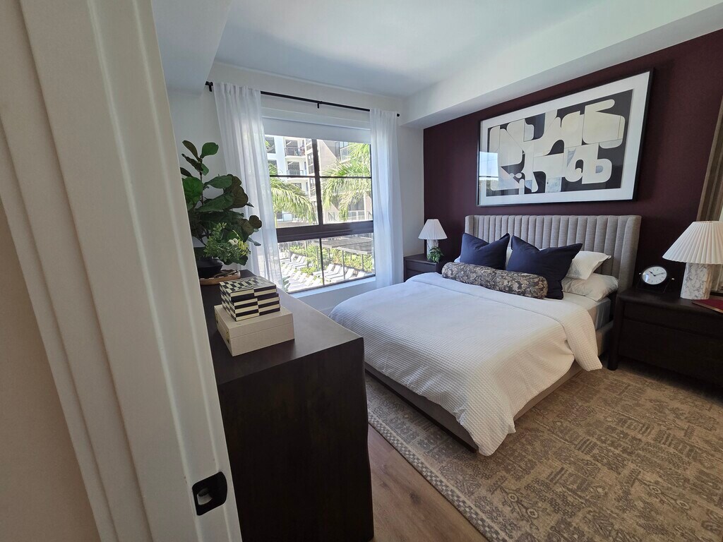 This open concept residence features a gourmet kitchen with a sleek island, stainless steel appliances, and premium soft close cabinetry. Elegant porcelain wood plank flooring runs throughout the home, complemented by large windows that invite abundant natural light to fill every corner of the space. Practicality meets style with expansive closets and an in unit washer and dryer included for your convenience. Beyond your front door, you can immerse yourself in restorative moments within a Zen garden featuring calming water elements, a sauna, a spa, a cold plunge, and a hot tub. For those with an active lifestyle, dedicated spaces are available for yoga, spin, and group fitness. The community further enhances your daily experience with a resort style pool and private cabanas, outdoor dining and grilling areas, and sophisticated lounges. Unique social and professional features include a private speakeasy, gaming and card rooms, as well as functional coworking areas and a state of the art podcast studio.