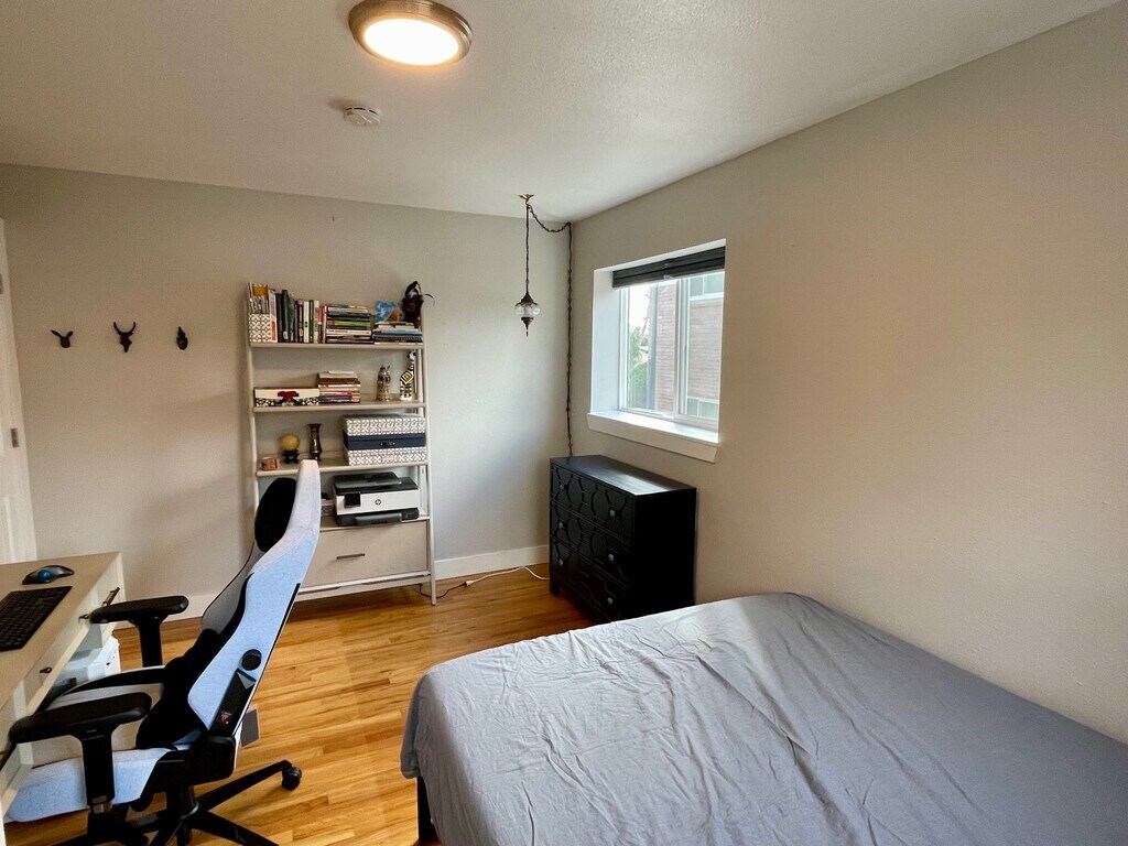 Furnished Room Available in a Newly Remodeled Home! Rental Includes Private Bathroom and Private Living Room! General Details: -12 month lease -Security Deposit: $1,580 -Rent does not include cost of utilities or required monthly cleaning service (Fiber Optic WiFi, Water, Trash/recycling, Gas, Electricity) -NO Pets -Kitchen is SHARED, fridges are separate (Insignia 7.2 Cu. Ft. fridge, see photo) -REQUIRED: Background check and credit check (willing to make exceptions for poor credit through a good credit co-signer or increased security deposit) Furnishings included in bedroom: -Queen size memory foam bed -Desk and Secret Lab gaming chair -Book shelf -Chest of drawers -Wall hooks -Turkish style pendant lamp Furnishings included in private living room: -Love seat -Wall mounted end tables and decorative lighting -Wall decorations and art -Flat Screen Smart TV -Rug -Cabinet The rentable space includes a furnished bedroom, private bathroom, furnished private living room, and a SHARED kitchen with a private fridge. There is on street parking and a covered bike rack for outdoor bike storage. The kitchen is shared with one other person. Washer/Dryer in-unit. Location Perks: -Across street from The Field Open Space -Walking distance from Broomfield Community Park, Public Library, and Broomfield Community Center -4 miles from Flatiron Crossing Mall -2.5 miles from 1st Bank Center Park n' Ride