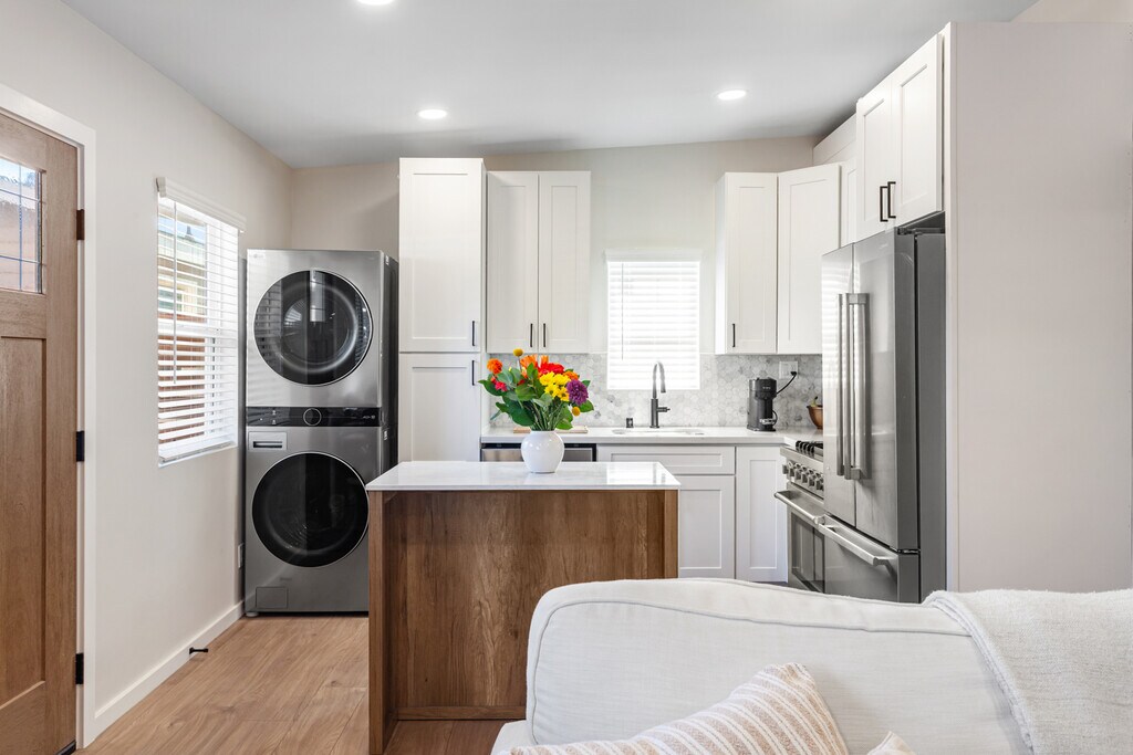 The beach life is calling! Beautifully remodeled beachside 2 bedroom / 1 bathroom with heat & air conditioning, stainless steel appliances (washing & dryer, dishwasher, oven, microwave, refrigerator), a completely remodeled bathroom with bluetooth bathroom speaker, and an amazing deck to entertain. This luxury apartment is your opportunity to live an elevated lifestyle within a 30 second walk to the beach path. Call or email to schedule a tour.