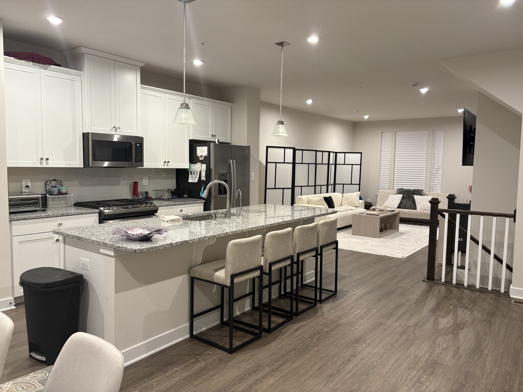 New Construction 3BR / 2.5BA Townhome with Garage Bowie, MD New, 3-level townhome located in a desirable Bowie community with walking trails and modern amenities. This thoughtfully designed home offers 1,680 sq ft of bright, open living space perfect for comfortable everyday living and entertaining. The main level features an open-concept layout with a spacious living area, dining space, and a modern kitchen with contemporary finishes, ample cabinetry, and generous counter space. Large windows throughout the home provide excellent natural light. Upstairs, you'll find three well-sized bedrooms, including a primary suite with a private bathroom and walk-in closet, plus two additional bedrooms and a full hallway bath. A convenient half bath on the main level adds functionality for guests. The first floor has direct access to the garage, plenty of storage, coat closets, and a bonus room. We have three rooms for rent. Master bedroom and second bedroom have walk-in closets and third bedroom has a smaller closet. Each room is priced based on size and amenities. Please email me for more information. Additional highlights include: Brand-new appliances and systems In-unit laundry Energy-efficient construction Conveniently located for students attending Bowie University Easy access to shopping, dining, commuter routes, and major highways This home is ideal for tenants seeking new construction, space, and convenience in a well-located Bowie neighborhood. No Dogs allowed Lease term: 12 months Credit & background check