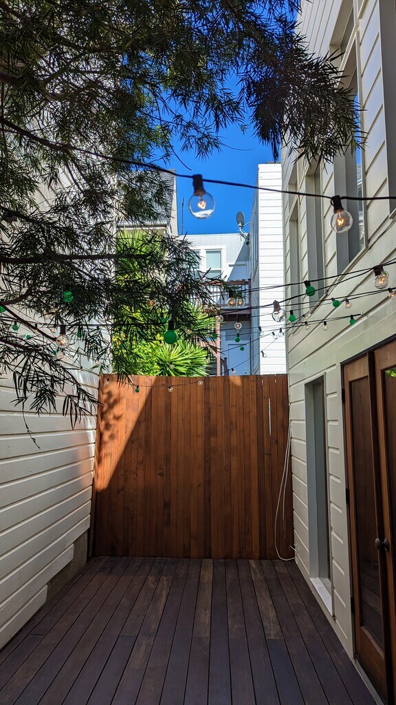 Casa privada de carruajes de dos pisos en el corazón de Cow Hollow con numerosos detalles arquitectónicos y un carácter de buen gusto. El loft de planta abierta en ambos niveles ofrece una alternativa única y tranquila a un apartamento o piso convencional. Terrazas privadas delanteras y traseras con árboles Vidrio del piso al techo Techos con vigas expuestas en ambos pisos Piña de nudos y pisos de secuoya que añaden un carácter único Armarios de caoba personalizados con paneles de vidrio con plomo Iluminación moderna en riel en el primer piso Encimeras de piedra Bañera extragrande con ducha Lavadoras y secadoras en las instalaciones Gran sala de almacenamiento dedicada Estacionamiento seguro disponible frente a la casa en el patio privado