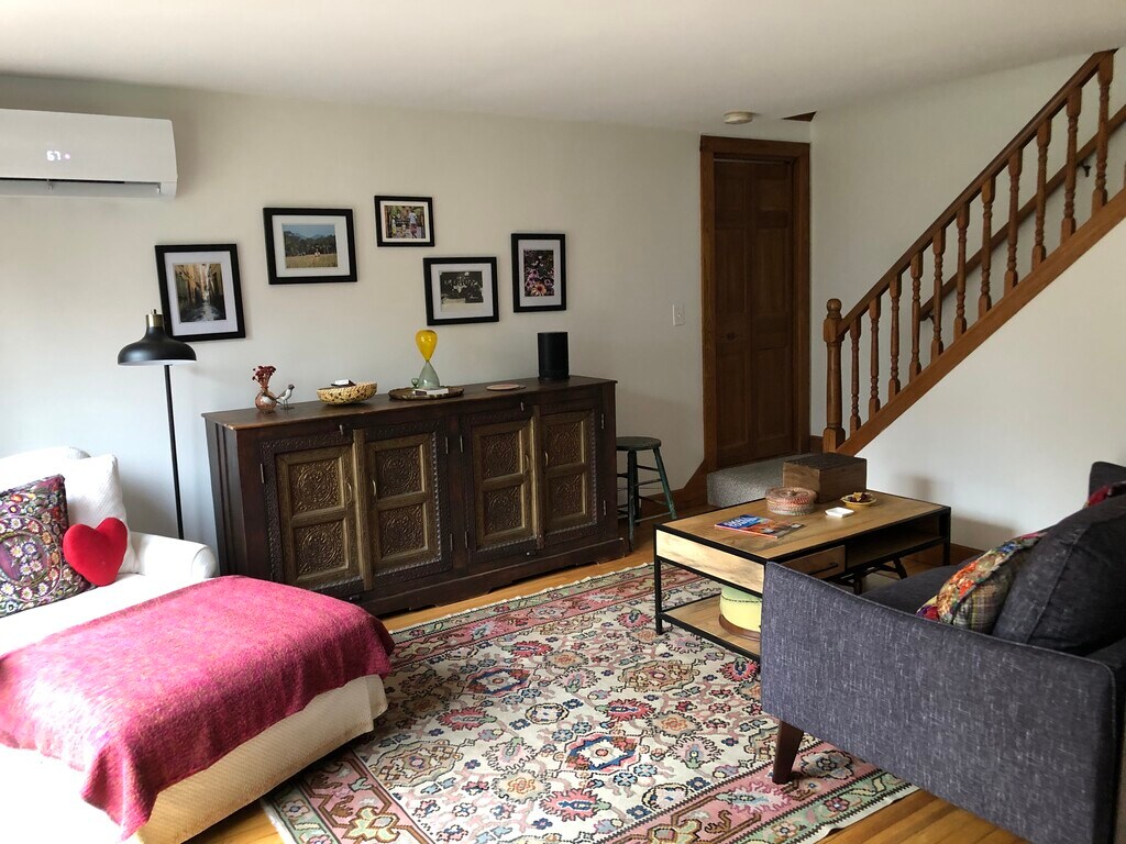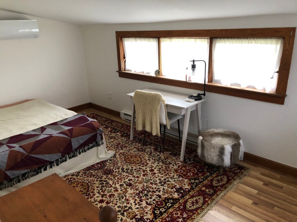Lovely 2 bedroom apt with lots of light and beautiful views. There is an additional loft space that is perfect for an office or yoga studio. Decks upstairs and downstairs with a large shared yard. Next door to cozy cafe in a quaint rural village surrounded by forests, farms, lakes & waterfalls. 20 Minutes to Great Barrington and15 minutes to ski area. Washer & Dryer provided in the unit. Rent includes hi-speed internet along with mowing, plowing, and trash removal. Heating and cooling provided by 3 heat pumps. Owner lives on-site. Owner pays for water, internet, plowing & mowing. Tenant pays electric bill with National Grid - level billing approx $270-300/month. Well-trained pets considered. One year lease. No excessive noise after 10:00pm. No smoking. Tenant required to keep batteries up-to-date in smoke detectors.