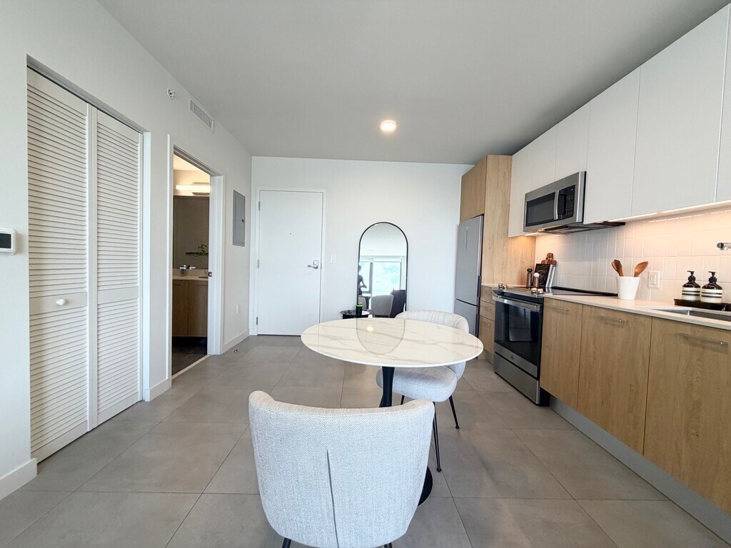 Step into this bright and modern 1-bedroom residence featuring an open layout, large windows, and sleek contemporary finishes throughout. The unit offers a spacious living area, a stylish kitchen with stainless steel appliances, and a serene bedroom with great natural light. The bathroom features a walk-in glass shower and clean, modern design. (Please note: unit does not come furnished.) Located in an unbeatable area, you'll be walking distance to Trader Joe's, Whole Foods, and Wynwood, giving you easy access to some of the best shopping, dining, art, and entertainment in Miami. Commuting is effortless with convenient highway access just minutes away. Residents enjoy an impressive suite of amenities, including: Rooftop Pool & Sun Deck with stunning views Sauna State-of-the-art Gym Coworking Room perfect for remote work Gaming Room for entertainment Outdoor Grilling Area Dog Park for your furry friends This unit offers comfort, convenience, and an ideal location perfect for anyone looking to enjoy vibrant urban living.
