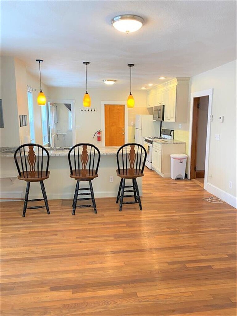 Located in the Tufts area of Medford. 3 bedroom / 2 bathroom apartment in a two-family. Open concept kitchen with microwave, dishwasher, disposal, refrigerator, and natural gas stove. Laundry is conveniently located in the unit. Parking for 3 cars is included. (Reference #145728)