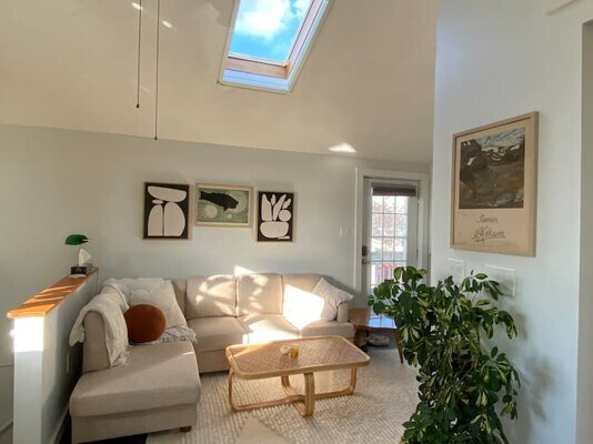 Disponible a partir de febrero. Condominio de alquiler a medio plazo amueblado (alquiler de 2 a 4 meses). Amueblado a la moda y totalmente equipado. Muy luminoso con tragaluces y una hermosa vista desde todas las ventanas. Cocina completamente equipada con lavavajillas, triturador de basura y nueva gama. Sala de estar con televisor inteligente grande con Roku y la mayoría de los servicios de transmisión Baño recientemente renovado con una hermosa ducha tipo lluvia con azulejos nuevos, lavadora-secadora en la unidad y calentador eléctrico adicional en la pared para mayor comodidad en el baño. Dormitorio con armario y rincón de lectura. Subida al tercer piso. Entrada compartida y mucho estacionamiento en la calle.