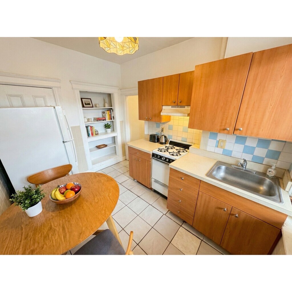 Sunny and well-laid-out 2-bedroom apartment featuring hardwood floors throughout and abundant natural light. Comfortable living space with a functional kitchen and two well-sized bedrooms. Shared laundry on-site and parking available. Conveniently located near public transportation, shops, restaurants, and major commuter routes. Heat and hot water included.