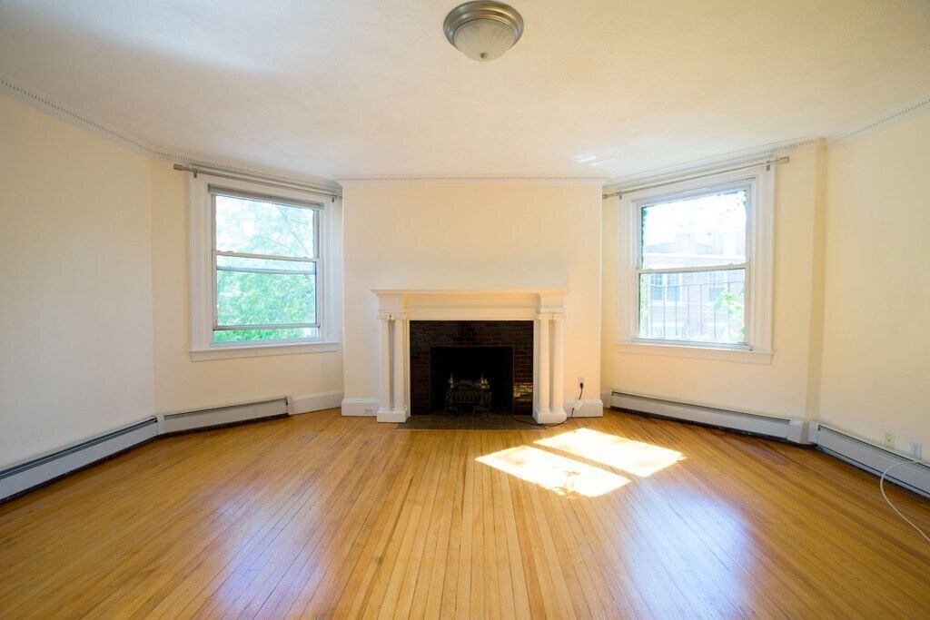 Charming 2-BR plus office unit in lovely Regent Circle. Large living room and bedroom with decorative fireplaces. The second bedroom is smaller but will fit a full-size bed. A bonus room in addition to bedrooms is perfect for an office. Updated kitchen with granite counters, built-in microwave, DW/Disp, and washer-dryer. Hardwood floors throughout, high ceilings, and great light make this unit a real find! 1 Parking Space INCLUDED IN THE RENT. Steps to either C- or D-Line, Waldstein Park, shops and restaurants in bustling Washington Square, and Star Market. Pet friendly for small pets.