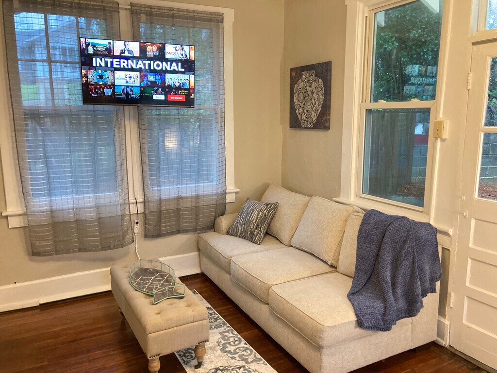 Apartments completamente amueblados de, incluye todos los servicios públicos, los servicios y de la conexión Wi-Fi de alta velocidad de cortesía. Este es un apartamento de 2 habitaciones, 1 baño apartamentos históricos que es de 900 ft² con techos de 12 pies de alto. La cocina cuenta con todos electrodomésticos modernos y cubiertos para cocinar cualquier comida. A una caminata de distancia del parque Lakebottom, 5 minutos en coche de Piedmont regional de Columbus y a cuatro minutos en auto de todas las atracciones del centro. Ubicado en una tranquila calle, este hotel fue comprado y diseñado específicamente para los residentes que necesitan alojamiento temporal en Columbus, GA, por 30 noches o más. Tira nosotros un mensaje para consultar la disponibilidad y recorridos. ¡Gracias!