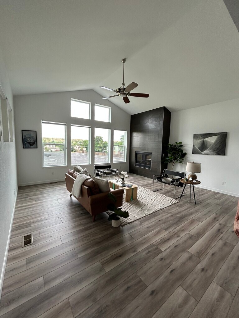 Modern house built in 2021. Bright open rooms with natural light. The house has granite countertops, gas stove, a mudroom, 2-car garage, and an electric fireplace. Approximately 2 miles from Colorado School of Mines, and a fast walk to a grocery store and restaurants. Three bedrooms are available in a shared house where 2 School of Mines grad students share the primary bedroom. Bedrooms are furnished with a double bed with a frame, a desk, and the converted bedroom has a wardrobe. The shared areas are furnished with a kitchen table and chairs, counter chairs, a couch and a tv stand.