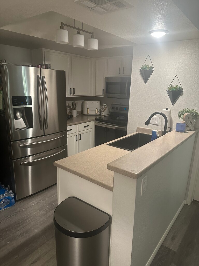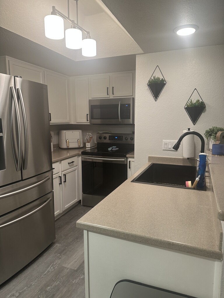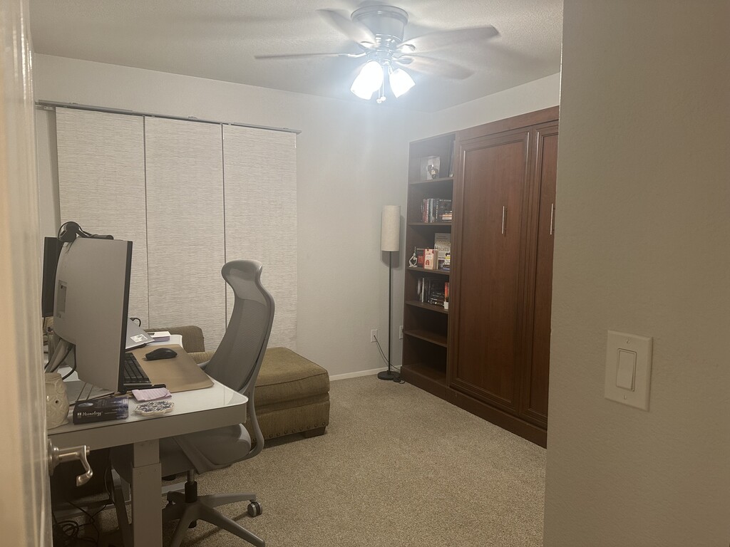 Condo located near Cactus and the 51 freeway. 2 bedroom/2 bath first floor unit. In unit full size washer and dryer. Full size double door fridge and large deep modern sink in kitchen. 1st bedroom offers 2 closets with bathroom attached and has a king size bed in it (for size reference). 2nd bedroom offers a walk in closet with bathroom attached and is used as my office with a queen size Murphy wall bed (for size reference). I will be leaving the tv mount on the wall for use- it currently holds my 75inch tv. Onsite gym and 2 pools on property. Additional photos or videos available just ask.