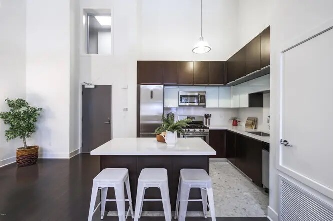 Welcome home to this beautiful condo located in Sawtelle Japantown, featuring high ceilings, contemporary lighting, and a spacious open-concept living and dining area. The home offers elegant wood flooring and stylish wallpaper accents in the bedrooms. The kitchen is equipped with stainless steel appliances, and a washer and dryer are conveniently located in the hallway closet. This property is unfurnished. Water, gas, parking, high speed internet included in rent, tenant pays electricity. Enjoy a cozy private patio attached to the unit, plus access to two outdoor common areas with fireplaces perfect for entertaining guests. The property includes two assigned parking spaces in secured parking. The community offers 24-hour surveillance for peace of mind. Excellent location near a variety of restaurants and a local park. 1-year minimum lease. Rent includes water, gas, high-speed internet, and parking; tenant pays for electricity. Security deposit is one month's rent. Pets are negotiable, renter's insurance is preferred, and no smoking is allowed. Please text or call Sarah for a showing appointment.