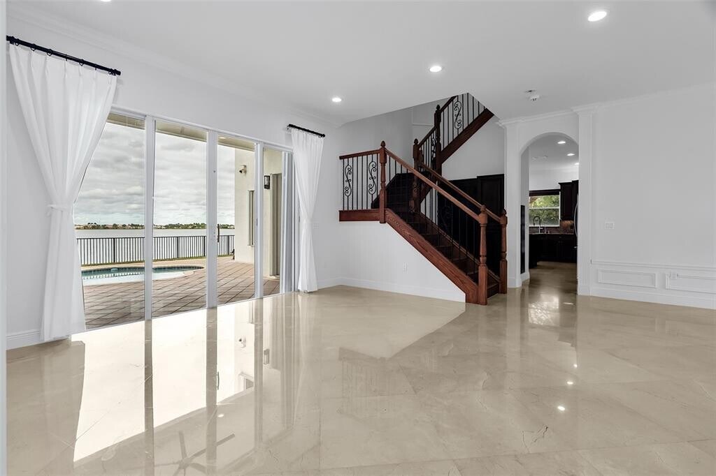 RARELY AVAILABLE grand and private 6-bedroom, 5-bath residence situated on a quiet corner lot with serene lake views. Designed for both comfort and privacy, this expansive home offers a thoughtful layout ideal for families or anyone who values space and separation within the home. Multiple living areas allow everyone to enjoy their own retreat, including a dedicated movie theater room perfect for private screenings and entertaining. The home features generous bedrooms, ample storage, a 2-car garage with abundant storage and additional parking. Upstairs, a charming reading and relaxation nook overlooks the lake- an ideal space for unwinding, working, or quiet reflection.