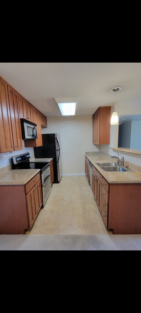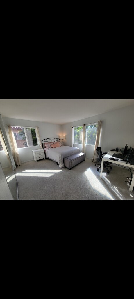 Large, CLEAN, quiet, upstairs, CORNER unit with balcony overlooking expansive courtyard. Upgraded stainless steel appliances and granite countertops. Reverse osmosis water filter system. Air-conditioning and full size in-unit washer and dryer. Large, bright and airy bedroom with spacious walk-in closet. Gated community with pool, BBQ and picnic area. Complex includes free access to gym and one assigned parking spot. Community room available for rental with reservation. Minutes from Main Street's fun and upbeat shops, restaurants, La Mesa, SDSU, the Trolley, bus stops, and the I-8 freeway. A short walk to downtown shops, restaurants, The Magnolia theater, and summer concerts and events.