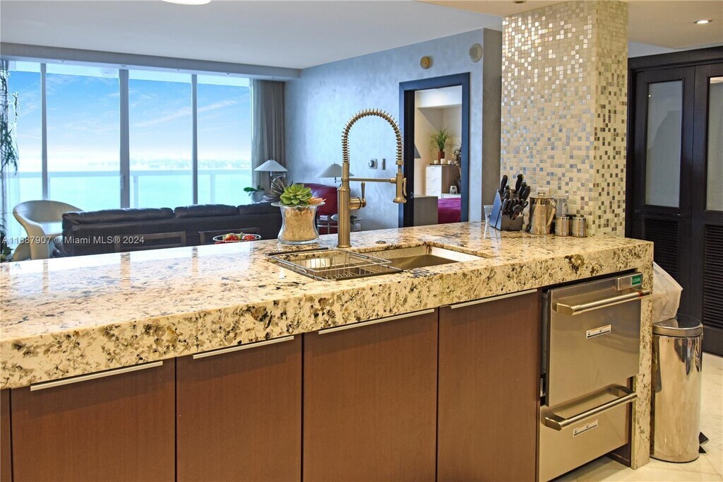 Stunning 2-bedroom, 2-bathroom unit with 1,154 SF of living space and large 232 SF balcony with unobstructed views of Biscayne Bay. This fully renovated, top-of-the-line property features a sleek Poggenpohl kitchen with premium granite countertops and designer Bizzasa finishes throughout the kitchen and bathrooms. The luxurious marble flooring, custom lighting, electric roller shades and matching wood details on baseboards, closets, and bathroom cabinets add an elegant touch to every room. This sophisticated condo rental is move-in ready and can be rented partially furnished or unfurnished. Unit will be available on February 1st.