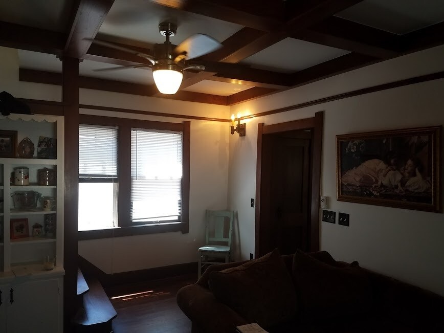 Hidden Surprises -- restored Historic Home - built in 1921 - for Rent -- lots of character (one mile north of downtown - via the bike trail or by street) - and just down the street from Beautiful and historic Union Park. Come explore the beauty of this vintage park. Take a ride on the historic carousel, play tennis in the park - or hang out at Captain Roys for food, drink and music - on the river. * recently restored.... you are going to love this home.... Vitals : Location --- 1801 E. 12th street -- just North of the East Village, Lutheran Hospital and recently opened - Des Moines River Walk, in the Historic Union Park Neighborhood. How To Get There -- Take Pennsylvania Ave - from the front of the Iowa State Capital and head North to University Ave, turn right on University Ave - then turn left on E. 12th street Only a few blocks from beautiful Union Park, near the river, the marina, the Saylorville bike trail and only 1 mile North of downtown. **Beautiful restored 1921 Home, with 3 large sized bedrooms and an unfinished basement. Lots of light from many windows. Vintage smaller kitchen - with historic panel look and plenty of storage. The living and dining rooms have beautiful woodwork and lots of windows... with beams on the ceiling in the living room, sconces throughout and a vintage built in - in the dining room. Fireplace for ambiance - but non working. Nice front porch with new vintage tile. The home includes a washer/dryer in the basement. There is also an old tuck under 1 car garage. Pretty small for car - but good for storage. Plenty of parking behind property. The home has a newer furnace and central air. Nice, well kept, quiet residential area. Rent is $1500 per month + utilities, NO SMOKING, one small dog allowed - two or three renters maximum. If you are interested at seeing the property, please leave your name and a day time phone number -- as well as when you would be available to see the property -- and I will return your call as soon as possible. Thanks for your interest. David Another historic property from Sterling Investments - living in the past and loving every minute of it.
