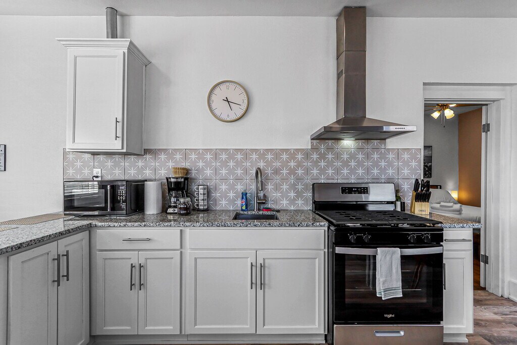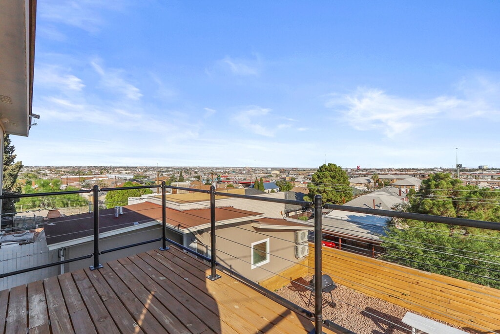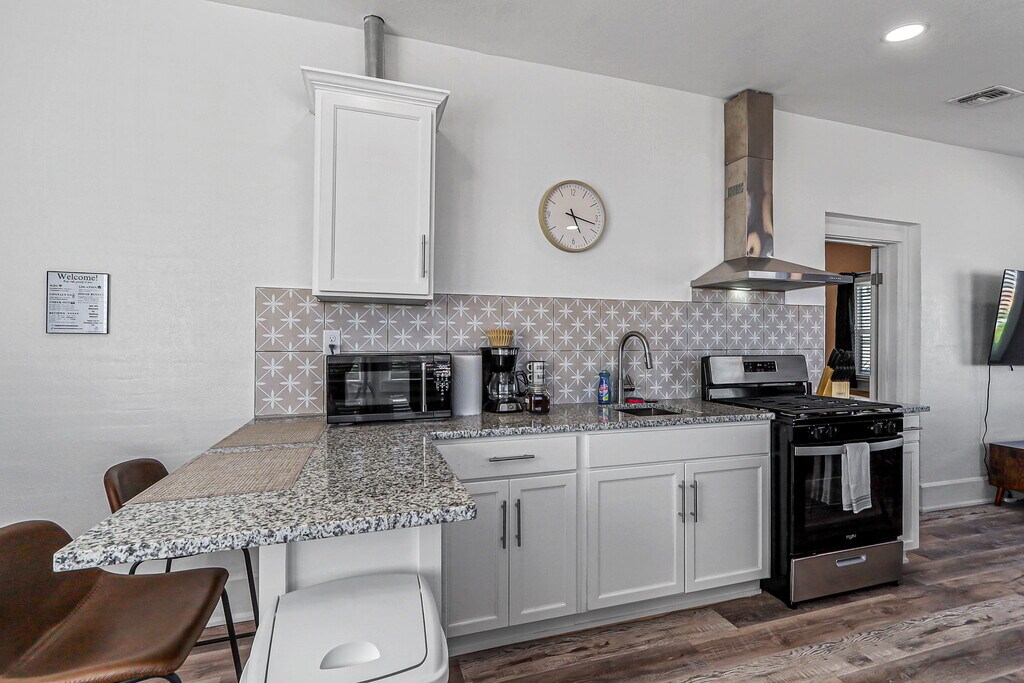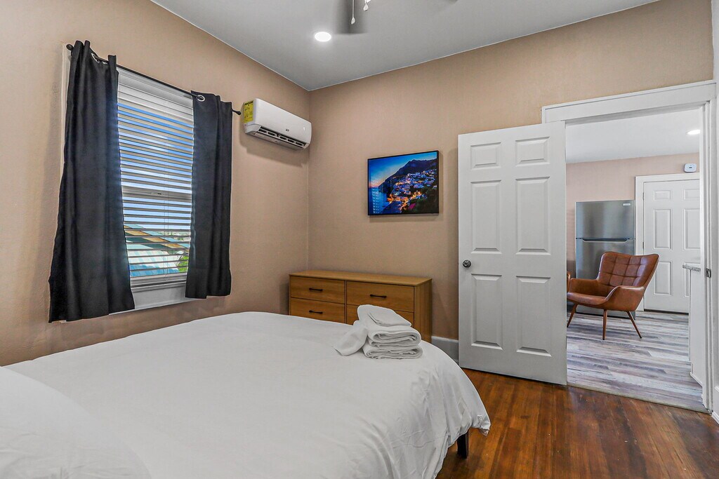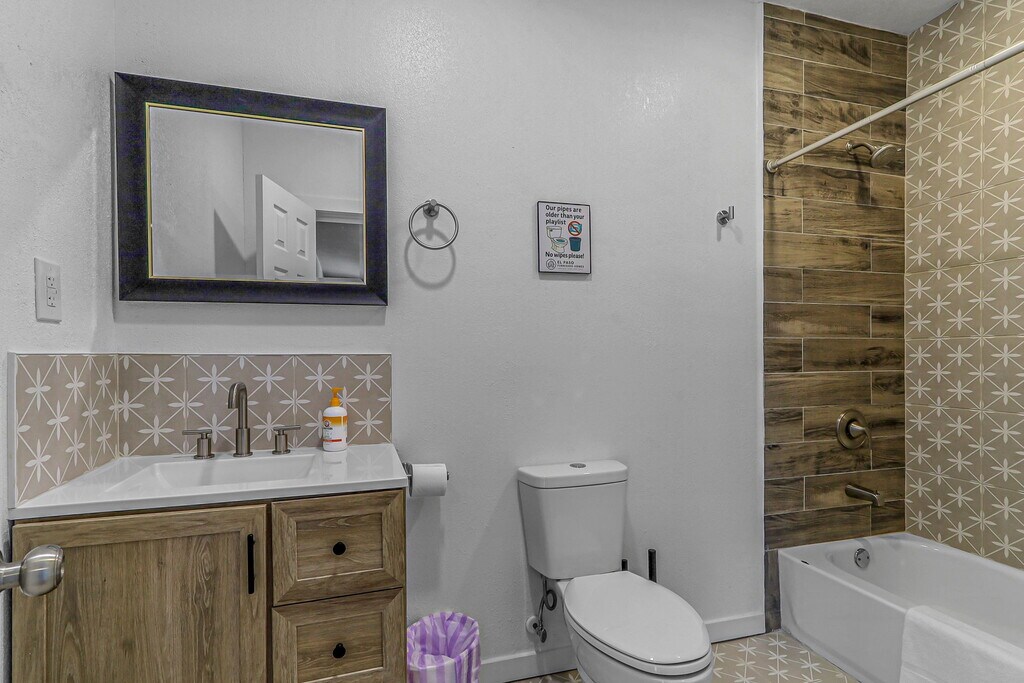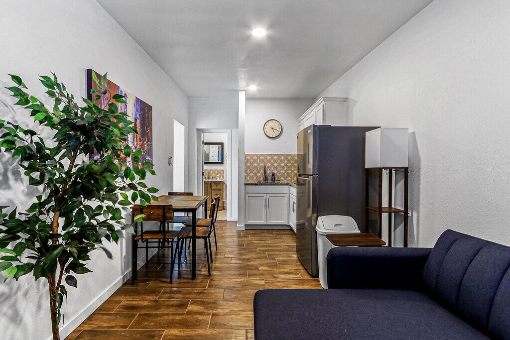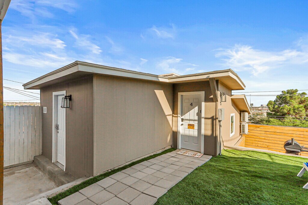 Welcome to Casa Arizona – A Collection of Modern Stays! Discover comfort and style across four beautifully remodeled units, ranging from spacious 2-bedroom/2-bathroom homes to cozy 1-bedroom retreats. Each unit is thoughtfully designed with: -Modern living rooms with plush seating & 58” Smart TVs -Queen bedrooms with blackout curtains, closets, workspaces & 43” TVs -Fully equipped kitchens with stoves, refrigerators, microwaves, coffee makers & essentials -Updated bathrooms with walk-in showers or bathtubs, stocked with starter toiletries & linens -Private or shared laundry for longer stays -Climate control (refrigerated air or mini-split systems) -Off-street parking included -Guests love the skyline and mountain views, thoughtful details, and the unbeatable location! *Nearby Distances: 5 min - Las Palmas Medical Center / 6 min - University Medical Center 7 min - UTEP / 5 min - El Paso High School 15 min - El Paso International Airport 6 min - Downtown El Paso / 12 min - Cielo Vista Mall 5 min - Scenic Drive / 10 min - El Paso Zoo *Good to Know: -TVs include streaming apps—guests must log in with their own accounts. -Occupancy limit: 2 people per bedroom. -Minimum stay: 1 month. -All guests 18+ must provide a valid photo ID and email before check-in to complete the Guest License Agreement. -Rental applications require: no evictions or unpaid judgments, minimum 600 credit score, and background checks for all adults. -If criteria are not fully met, additional conditions such as a higher deposit or co-signer may apply. *Outdoor Amenities: Head to the shared patio to fire up the grill, play a round of cornhole, or relax at the picnic table while enjoying El Paso’s warm evenings. Casa Arizona – more than a stay, it’s your El Paso home away from home!