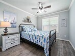 Featuring 3 bedrooms and 2 bathrooms, this thoughtfully designed retreat combines modern touches with classic beach vibes—perfect for relaxing after a day in the sun or on the water. Nestled on the island and just a short drive to the beach, this home offers convenience and tranquility. Inside, enjoy an open and airy floor plan with abundant natural light, coastal-inspired finishes, and sleek modern updates throughout. As you walk in, the beautiful fireplace with modern stone catches your eye as the spacious living and dining areas flow effortlessly into a contemporary kitchen complete with stainless steel appliances, quartz countertops, tiled backsplash and a breakfast bar ideal for gathering.The primary suite is a calming escape with a private bath, large tiled shower and generous closet space, while two additional bedrooms offer flexibility for guests or home office use. Stylish fixtures and coastal touches create a serene atmosphere in every room. Outside, a covered patio and pool-sized yard provide the perfect setting for outdoor dining or morning coffee. Located near prime fishing spots, this home is a dream for anglers and beachgoers alike.