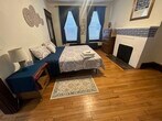 Este histórico apartamento del primer piso cuenta con paneles solares y está ubicado en una calle tranquila. Dormitorio amplio con cama Queen, amplia sala de estar, comedor y cocina con lavaplatos. El segundo dormitorio está preparado para una oficina ideal para trabajar desde casa. A solo 5 minutos a pie de Grandin Village y Roanoke Greenway. Grandin Village cuenta con deliciosos restaurantes, cine y mucho más. También alberga divertidos festivales durante todo el año. Características: Camarote compartido Front Porch Small Private Back Deck y patio trasero con hamaca y mesa de picnic Amplio dormitorio con cama tamaño queen, amplia sala de estar, comedor, oficina y cocina con lavaplatos Off Street Parking for Two Vehicles Eléctrico con paneles solares Bombillas de luz LED en todos los servicios públicos, Internet de alta velocidad; Netflix está incluido Lavavajillas en la cocina Ventiladores de techo con calefacción radiante en todo el edificio Uso gratuito de la lavandería en el edificio.