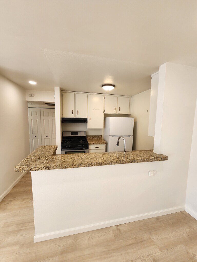 Charming & Bright 1-Bedroom Condo for Rent 18645 Hatteras St, Tarzana Discover this spacious and luminous one-bedroom condominium in a peaceful, gated Tarzana community. As you walk in, you'll immediately notice the dramatic high ceilings and abundant natural light, highlighted even more by brand-new flooring and recessed lighting throughout. Interior Features: * Open-concept living and dining area, perfect for entertaining or relaxing * A second-level balcony overlooks the street and verdant green spaces your own little retreat * Kitchen with a breakfast bar featuring granite countertops, vintage-style cabinets, and modern appliances * The bathroom offers a tub/shower combo and a ceiling-mounted heater for cozy warmth * Central air and heat for year-round comfort * Includes a dedicated storage cabinet in the garage Building & Community Amenities: * Large community laundry facility * Two parking spaces (plus guest parking) * Fully remodeled recreation room with lounge seating, a kitchen, and a pool table * Resort-style shared amenities: pool, spa, BBQ area, sauna, gym * Walkable grounds with lush greenery and serene pond features * Easy access to the 101 Freeway commuting made simple Neighborhood Highlights & Nearby Conveniences: Convenient Shopping & Dining: Just a short walk or drive away is Village Walk at Tarzana (on Ventura Blvd.), a vibrant shopping center anchored by Whole Foods, TJ Maxx, LA Fitness, and more. Along nearby Ventura Boulevard you'll find a rich mix of restaurants, cafes, and boutique shops everything from casual eateries to wine bars and coffee hangouts. Transit & Recreation: A few blocks north lies the Orange Line busway and bike path, offering accessible public transit and great biking options. Outdoor lovers will appreciate that hiking trails in the Santa Monica Mountains are only about a 10-minute drive away. The gated, landscaped community itself feels like a retreat ponds, garden paths, greenery ideal for peaceful walks right at home. Community Character: Residents in this area frequently comment on how walkable and friendly the neighborhood is, with restaurants, stores, banks, and coffee shops readily accessible. Why This Is a Great Place to Call Home: This condo truly blends style, comfort, and location. With its loft-like ceilings, bright open design, and upgraded finishes, it's a warm and inviting space. The community amenities feel like a resort, while the proximity to top schools, shopping, and transit give you both convenience and a high quality of life. Whether you're relaxing inside or exploring the area, this rental offers the best of Tarzana living. 1 year lease. Hot water is included. No smoking.