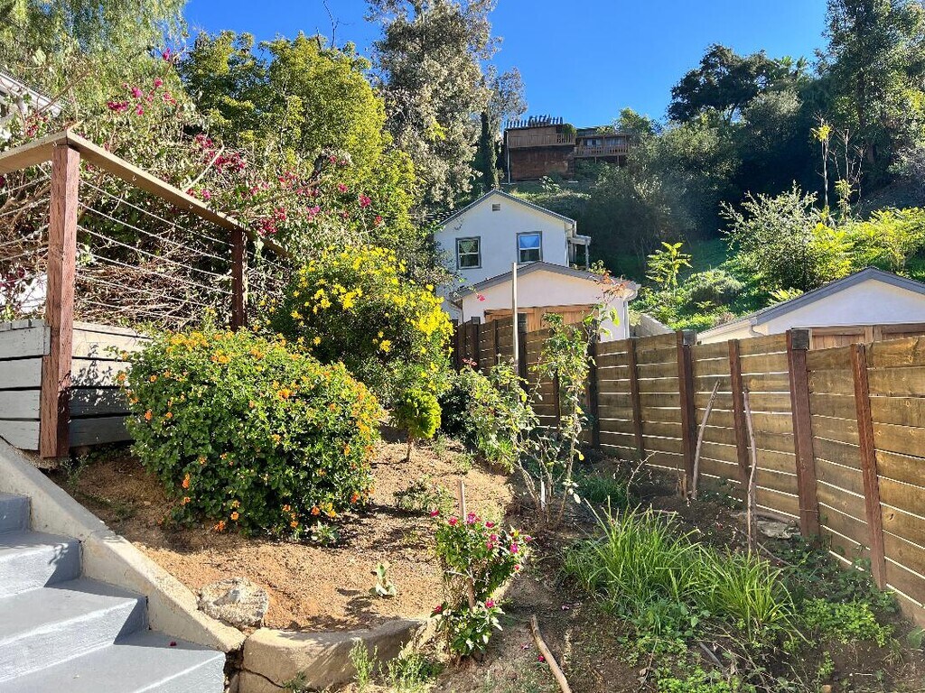 Spacious 3br, 2ba apartment in the foothills of Highland Park, is on a cul-de-sac, at the end of Ave 56. Occupying entire 2nd story with no adjoining walls, it's like living in a house. With expansive views, lots of light and open floor plan, this sunny space is the perfect home to live and work in. Open floor plan connects the living room, kitchen and dining room. It's tastefully rehabbed throughout, with fresh paint and new laminate floors. Large kitchen island provides seating, a lot of storage and quartz countertops. One of the bedrooms has a separate entrance and is large enough to be divided into sleeping and sitting areas. Same is true for primary bedroom, which spans the width of the building (24 ft!). Large covered patio off the living room comes with a view and is a perfect place to relax and entertain. Another, very large patio is sun drenched summer and winter. There is a lot of greenery surrounding this unconventionally attractive space. Laundry is shared with one other unit. 1 car garage.