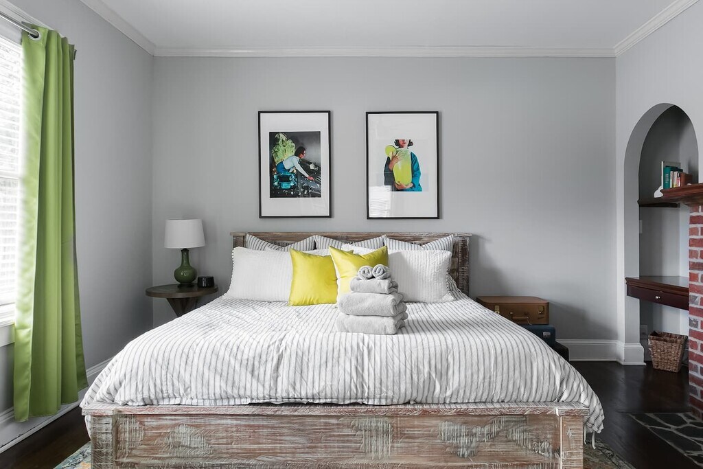 ? LOCATION HIGHLIGHTS: ? Prime location between Candler Park and Lake Claire neighborhoods ? 2-minute walk to Candler Park MARTA Station for easy city access ? 5 minutes to Little Five Points, Inman Park, and the Atlanta BeltLine ? Short drive to Emory University, CDC, and Ponce City Market ? Surrounded by parks, coffee shops, local eateries, and walking trails KEY FEATURES: ? Free driveway parking ? Private patio and deck with outdoor furniture ? Master bedroom features a King-sized bed ? Second bedroom with a cozy Queen-sized bed ? Clean and sanitized full bathroom with bathtub ? Free ultra-fast fiber optic Wi-Fi internet ? TV with standard cable ? Full sets of hotel quality sheets and duvets for the beds and enough towels. ? The kitchen is fully equipped with all new stainless steel appliances including a large fridge, stove, and a coffee machine ? A washer and dryer are also ensuite for guests to use.