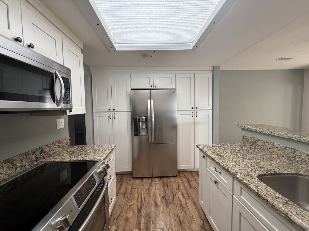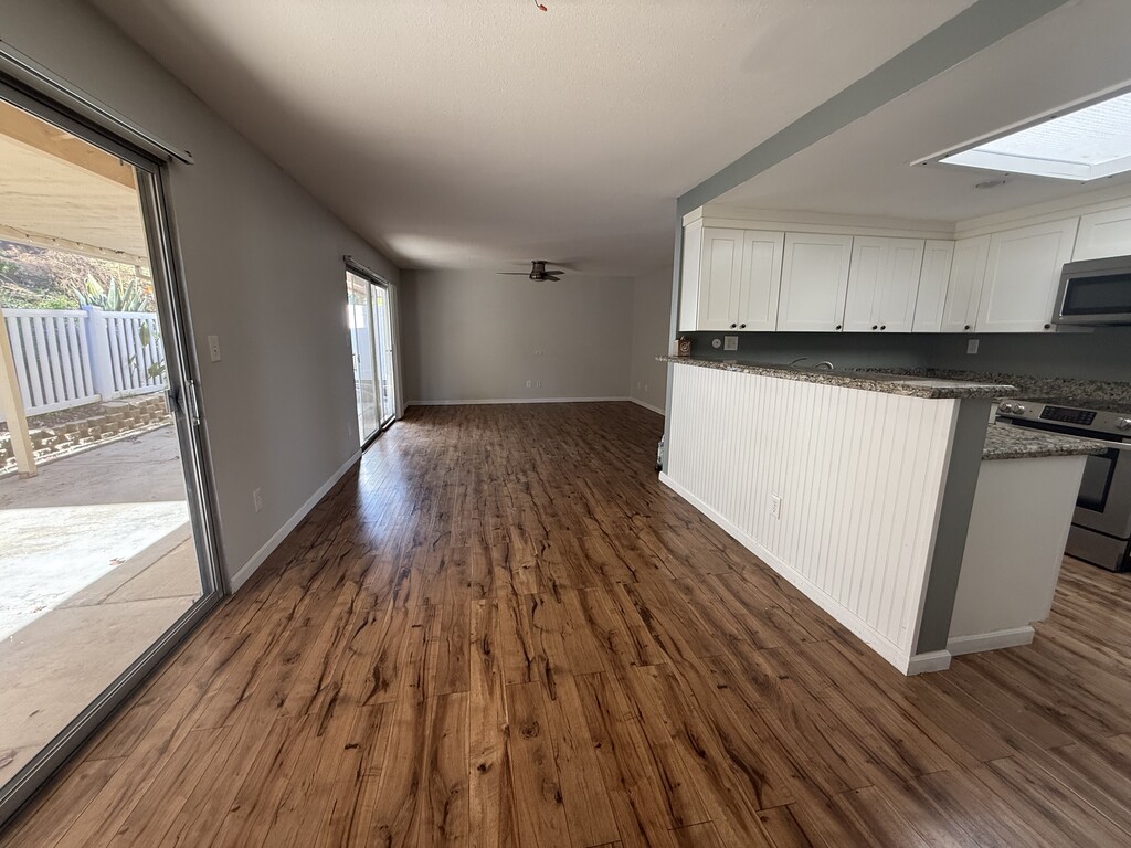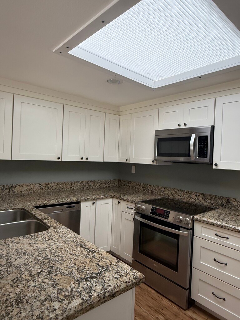 Spacious 1 br/ 1 ba + Bonus room perfect for office or guest room. Large very private covered patio area . 2 off street parking with carport attactched to unit. Granite countertops in kitchen and bathroom. Stainless steel appliances included. Washer and dryer in unit. Large walk in closet and two additional storage closets.