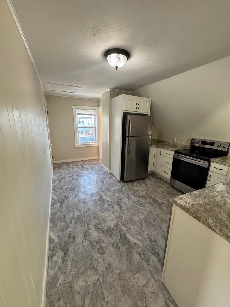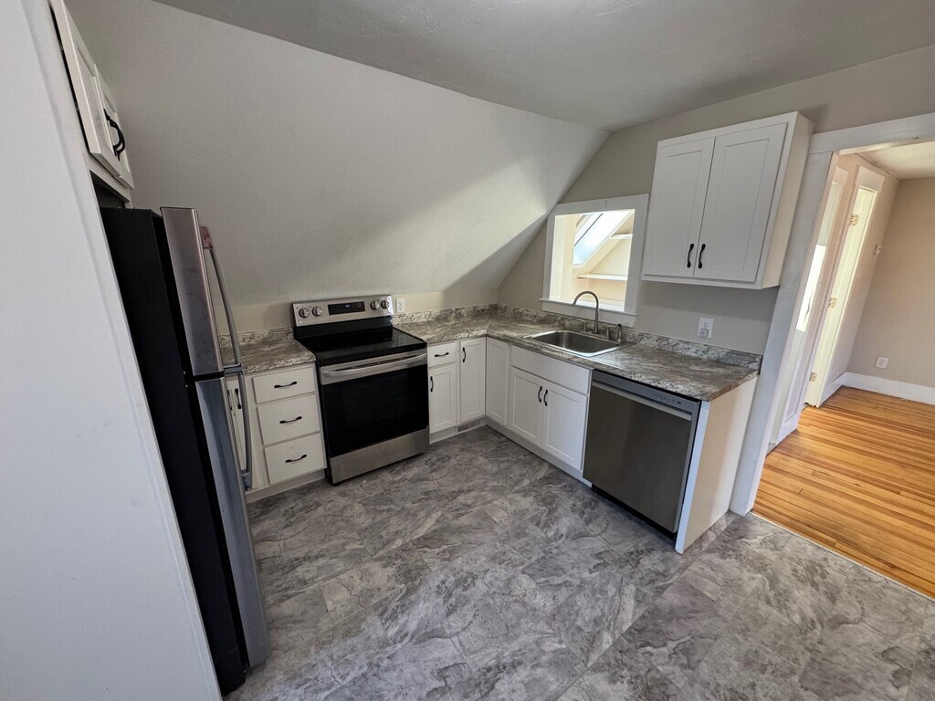 This is a big beautiful newly renovated 2 bedroom apartment with high ceilings right in the heart of Whitman Center. This two bedroom was completely redone with all new flooring, paint, kitchen, bathroom, and stainless steal appliances. The apartment is located on the second floor of a beautiful 5 unit Victorian house. Park right in the back private parking lot with your assigned parking space. Enter the apartment right in the back into a small hallway and your bathroom to the right. Bathroom hallway is all new wood floors. Bathroom features a fully restored claw tub, new toilet, and brand new vanity with fixtures. From there you enter the beautifully restored kitchen with all new stainless steal appliances. Kitchen features, stainless steal gas oven with hood vent, 30in fridge, and dishwasher. The smaller bedroom is located off the rear of the kitchen and has full restored hardwood floors and brand new fan fixture. Nice closet with big windows for lots of natural light. From the kitchen you enter a big living room with lots of tall vinyl windows that let in lots of natural light. Apartment features nice views of the park right across the street. Living room has a nice closet with built in shelves. The bedroom is right off the living room and has a smaller closet built into the corner.. The bedroom and living room have all brand new carpet and new ceiling fan fixtures. Bedroom is large and could easily fit a king size bed with room to spare. Tall ceilings without and the apartment has all been freshly painted. Coin op laundry is located in the basement area. Tenants pays gas forced hot water heat system and electric utilities that are all brand new. First, Last, and Security ($7,200) with the signing of a 1 year lease. Please reach out with any questions this apartment will not last long!