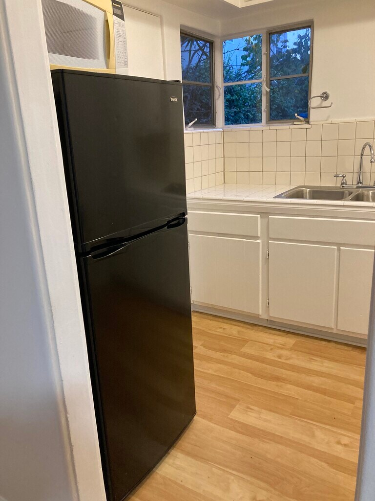 Cozy single in one-story fourplex in quiet neighborhood. Freshly painted with all new bathroom fixtures, lots of storage space, and hardwood floors. Separate fenced front yard and private back patio, with a small garden ready for planting. Permit Parking. Excellent area for walking and biking. Walking distance from Santa Monica College. Less than 2 miles from downtown Santa Monica, Santa Monica Beach, Santa Monica Pier, and Palisades Park. Near the 20th St. onramp for the 10 Freeway, as well as Santa Monica Big Blue Bus stops and the Expo line (walking distance to two different stations). Close to good restaurants, grocery stores (Whole Foods, Trader Joe's, Ralph's, Von's, and Bob's Market –– everyone's favorite local grocery), other shopping conveniences, and entertainment venues.
