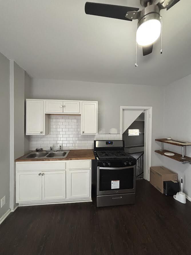 Welcome to your new home! This cozy and recently updated 2-bedroom, 1-bathroom apartment offers both comfort and character in a convenient neighborhood setting. On site parking with washer and dryer included that can be found in the basement. Perfect for singles, couples, or remote professionals, this unit is move-in ready and features a private entrance and thoughtful finishes throughout. Spacious and bright, with a large window for natural light and plenty of room for a full or queen-size bed and furniture. Equipped with a stainless steel gas stove and oven, a double sink, butcher block countertops, and white shaker cabinets. Subway tile backsplash and open shelving add a modern touch. Refrigerator included. Features dark wood-style flooring, neutral gray walls, and a cozy layout that flows nicely into the kitchen. Your own entrance with a storm door and secured front screen. Mailbox included right outside your door. A rustic accent separating rooms with style and function. Enjoy the charm and character of one of the area's most beloved neighborhoods. Times Little Italy is known for its rich cultural heritage, walkable streets, local eateries, and welcoming community atmosphere—all just minutes from downtown and major transportation routes.