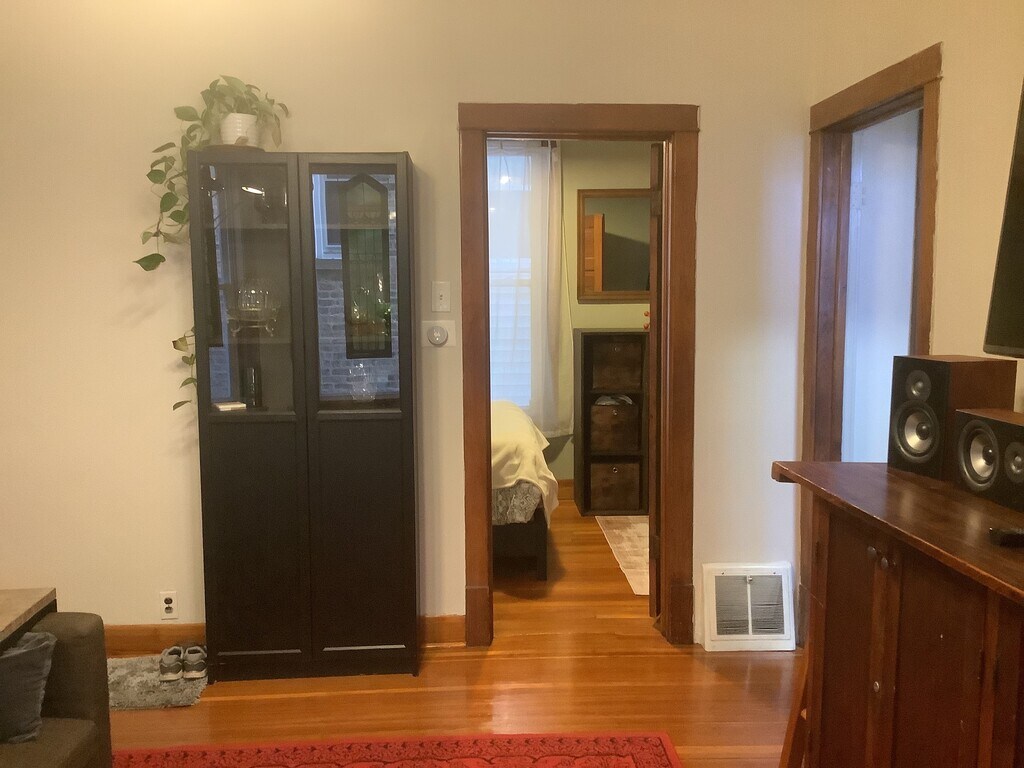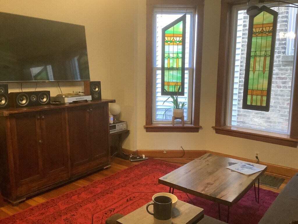 FURNISHED Sunny Apartment in Historic Logan Square Greystone available for flexible lease 4 months or more. Available April 1st (potentially a week earlier) MESSAGE ME FOR OPEN HOUSE INFORMATION... OPEN HOUSE SUNDAY 2/22 FROM 12-3. Historic Greystone Four Flat - Fully Furnished including stereo, TV, microwave, kitchen (pans, dishes, small appliances, utensils, etc), linens, drapes, towels, etc. Just bring your food and clothes. - 950 Square foot unit with enclosed back porch - Freshly painted throughout - Beautiful stained-glass panels in living room - New kitchen flooring, refinished wood floors in additional bedrooms and living area - High Ceilings with lots of natural light - Sunny 12 x 15 Eat in kitchen with two islands for additional counter, eating, and cabinet space. - Central Air Conditioning - 2nd bedroom can be used as office or bedroom if needed (can supply twin bed or futon) - Closets in each bedroom, large pantry, and built-in china cabinet. - Extended lot includes community patio, yard, and space to garden - Enclosed back porch - Laundry in the building as a convenience, laundromat for larger items is less than a block away - One block north of the 606 and Kimball Arts Center - Pets negotiable with additional security deposit. (Pets were in the unit with previous tenant) - Utilities included: water, sewer, waste, electric, and gas. WIFI NOT INCLUDED In unit wifi would require personal hot spot. - Kimball bus stop within block, close to additional bus routes - Street Parking in front of unit on Kimball Avenue. One Parking pad spot included with rent Current tenant has adjusted some furniture placement Futon, twin bed, or no bed /office set up can be available in 2nd bedroom. 1st floor rear unit with enclosed porch. Parking is included. Current tenant has adjusted some of the furniture in photos. MESSAGE ME FOR OPEN HOUSE INFORMATION... OPEN HOUSE SUNDAY 2/22 FROM 12-3. Screening/Background Check required. Pets must be pre-approved and require additional security deposit