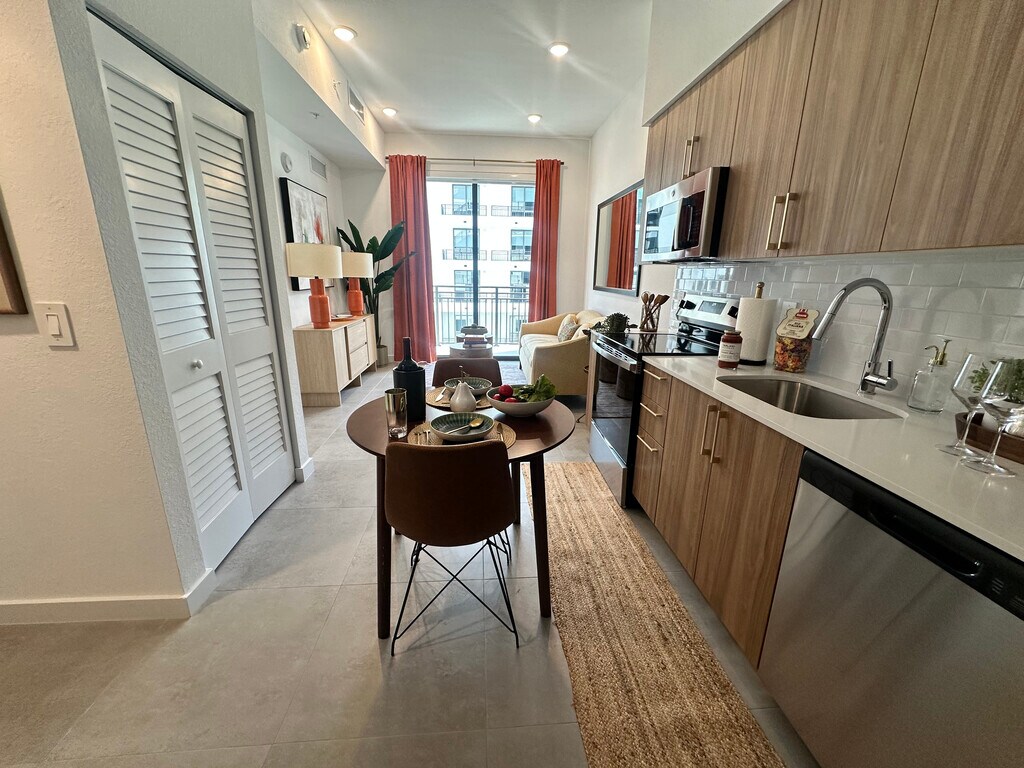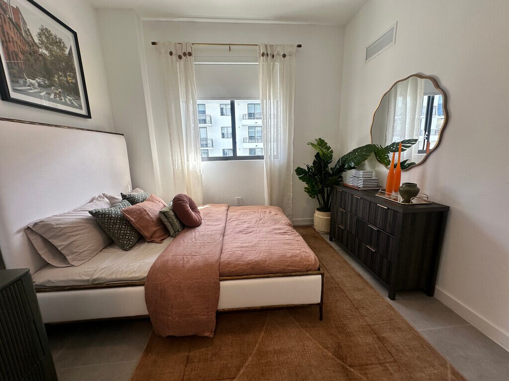 The residence offers a peaceful yet connected lifestyle, blending open spaces with elegant design. The interior showcases a gourmet kitchen with quartz countertops and stainless steel appliances. Spacious bedroom and bathroom, walk-in closets, and a full-size washer and dryer provide all the essentials for comfort living. Enjoy access to an array of resort-inspired amenities. Relax at the spa featuring massage rooms and a sauna, or lounge by the pool in private cabanas with daybeds. Stay fit in the fully equipped fitness center, connect with neighbors in the social and gaming lounge, or dine at the summer kitchen and outdoor grilling area. With concierge service, secure parking, and on-site laundry and dry-cleaning services, every detail has been carefully crafted to deliver an elevated coastal living.