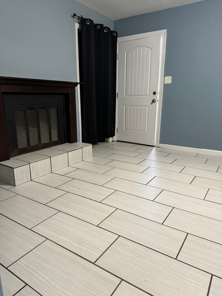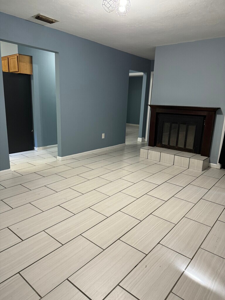 Dúplex grande... ¡tiene patio trasero delantero y completamente cercado! Excelente para PETS. La chimenea mantiene toda la unidad caliente en invierno. Excelente ubicación y a la sombra de un enorme roble vivo.