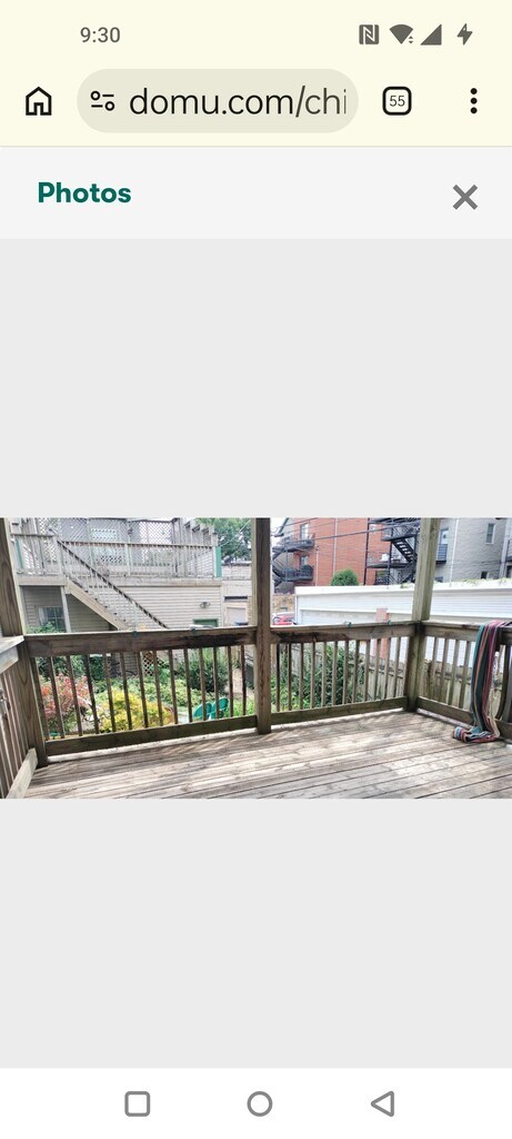Bright one bedroom unit in vintage two flat. Office/guest room. Separate eating area. Large private deck. 10 ft ceilings Nice neighborhood on quite street. Walking distance to Roscoe village restaurants and bars