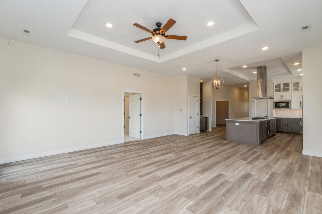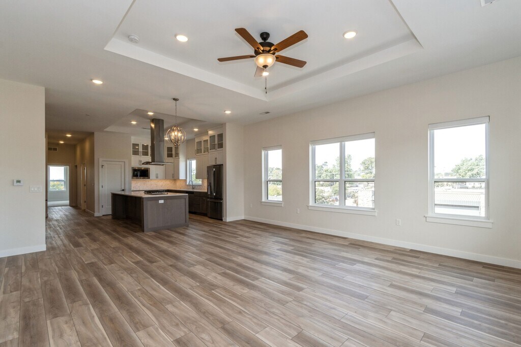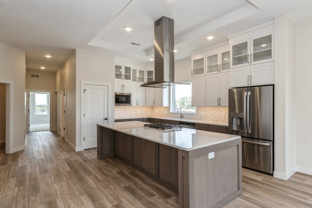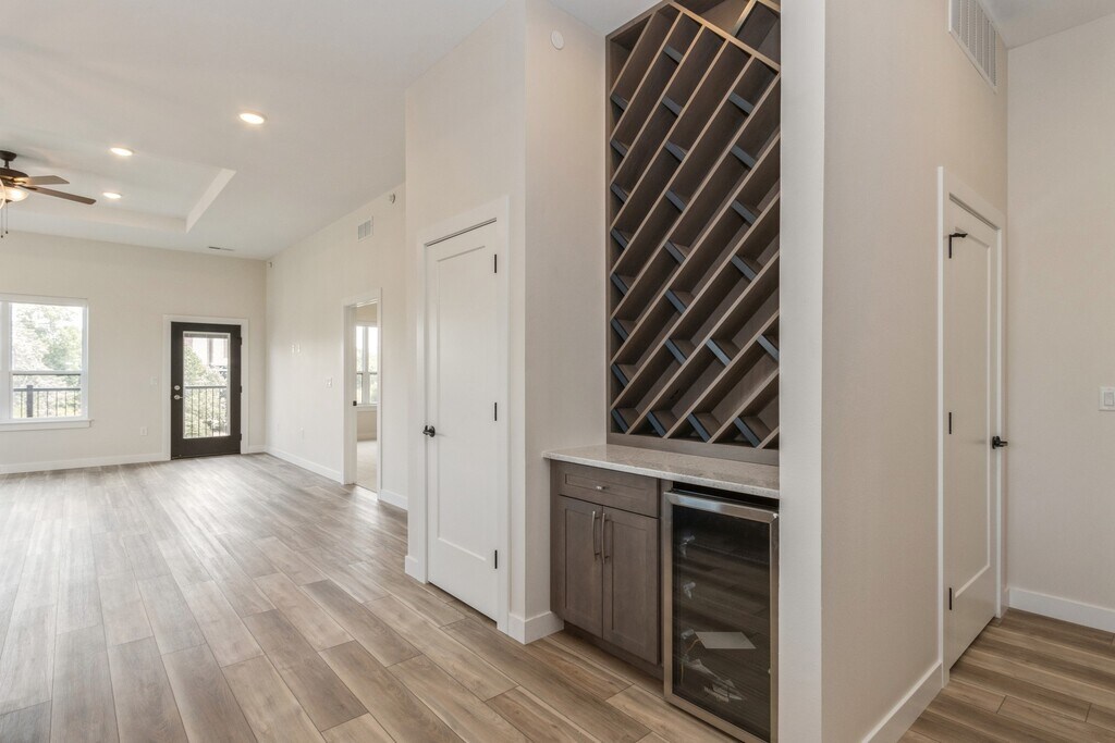 This 2 bedroom, 2 bathroom unit features a private terrace, large windows, and 9’ ceilings that naturally enhance the spaciousness of each room. Kitchen features shaker style maple cabinets w/ tile backsplash, an island, gas range w/ hood, pantry, quartz countertops, & a bar/coffee area. Split-bedroom floorplan offers privacy for both residents and guests, each offering walk-in closets, & primary bathroom having dual sinks. Spacious laundry room includes additional built-in storage. Community spaces include a fitness center, furnished outdoor spaces with firepits & grills, an on-site dog park, multipurpose room and a community kitchenette.
