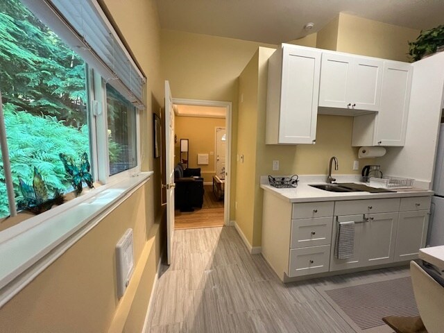 This serene, private 1BR apartment is set in a quiet, wooded neighborhood. Surrounded by majestic evergreens, it's a true nature retreat near UW Bothell & Evergreen Hospital. The newly made unit features a private entrance, new stainless-steel appliances and kitchen, washer/dryer, and bedroom and kitchen heated floors. Rent includes all utilities! Enjoy calming forest views from every window or outdoor seating. The space is fully furnished and ready for you. Dedicated driveway parking available. The neighbors are friendly . One always sees people walking their dogs or riding their bikes on our quiet street. Home owner's deck accessible with permission from owner Property Highlights: • 3 Rooms + full bathroom. • Approx. 550 sq ft of airy, open living space • Newly built kitchen with full-size, new, stainless-steel appliances • In-unit new washer and dryer • Heated floors • Rent includes utilities (Wi-Fi, Electricity, Gas, Water, Garbage) • Modern bathroom with walk-in shower and updated fixtures • Driveway parking and private PO box • Fully Furnished with HDTV, cooktop, microwave, refrigerator, kitchen utensils, etc. • Cute kitchen boasts an eating bar with stools, perfect for effortless dining or a quick snack • New mattress and full sized bed in bedroom. • Large windows with forest views, warm wood-style floors, and a peaceful atmosphere Natural Setting & Location: • Surrounded by towering evergreens in a park-like environment • Located in Woodinville, a destination known for its wine country charm and proximity to outdoor recreation. • 5-minute drive to groceries, restaurants, and shops • Under 15 minutes to UW Bothell • Under 20 minutes to Evergreen Hospital • 30-minute drive to downtown Seattle • Close to the Cascade Mountains, Stevens Pass, and Lake Washington offering opportunities for outdoor adventures.